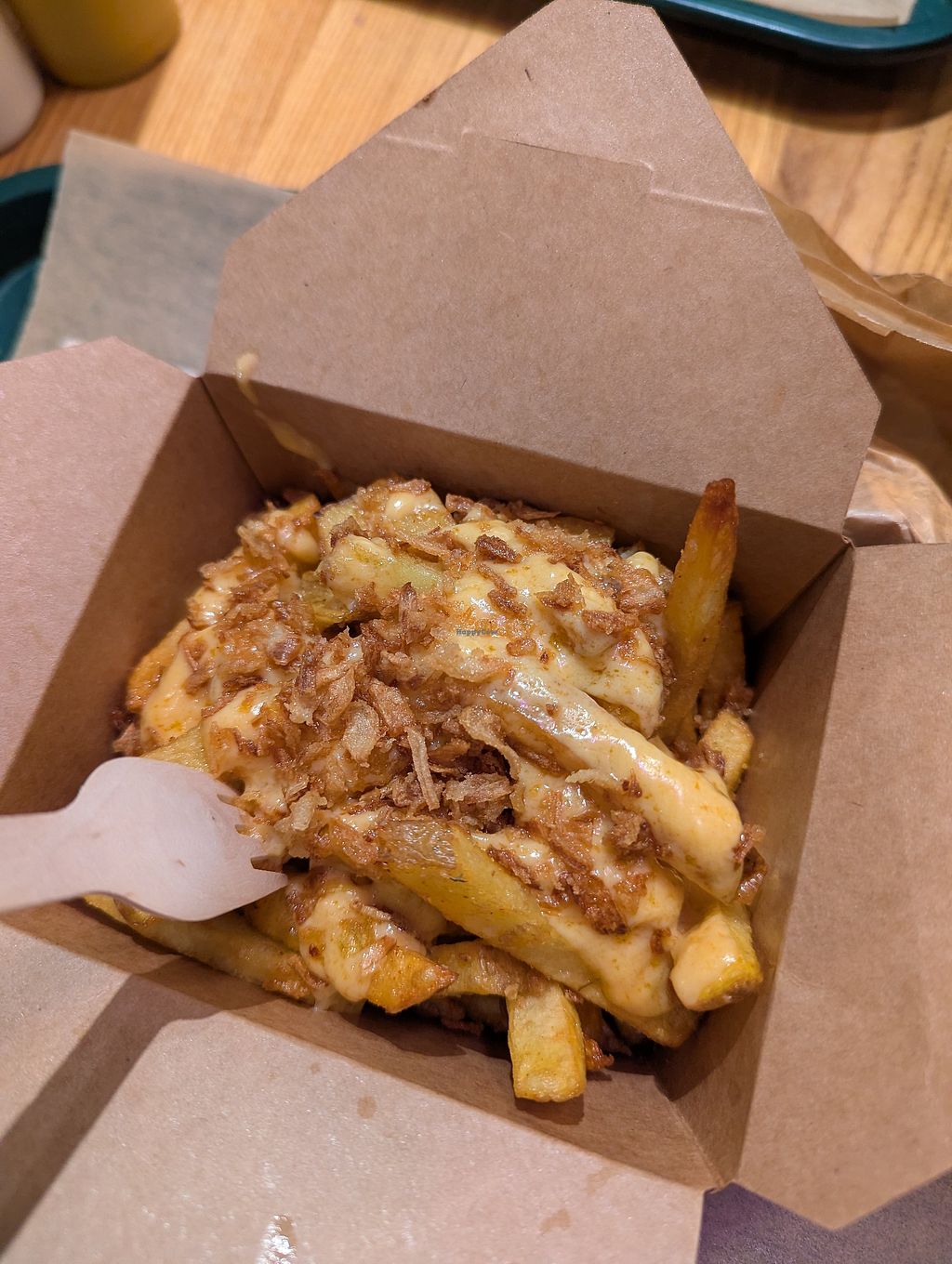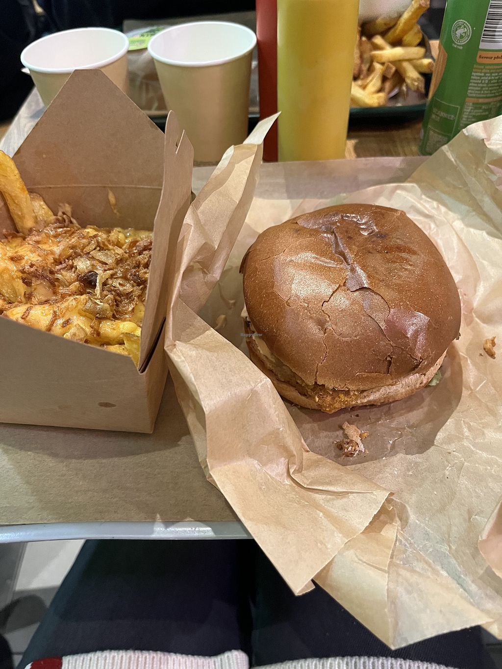 Between us had the vegan 'chicken' nuggets and the fries, sweet potatoe fries and the cheesy fries. Everything was amazing!! Really great service, staff were helpful and were happy to offer different sauces. Also had the vegan white wine which was good!