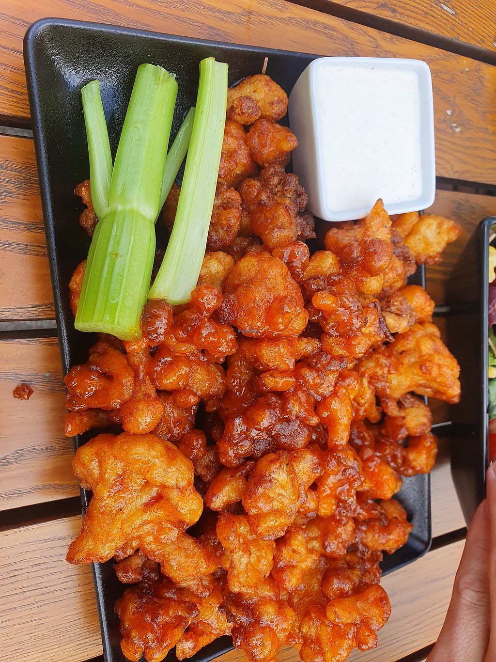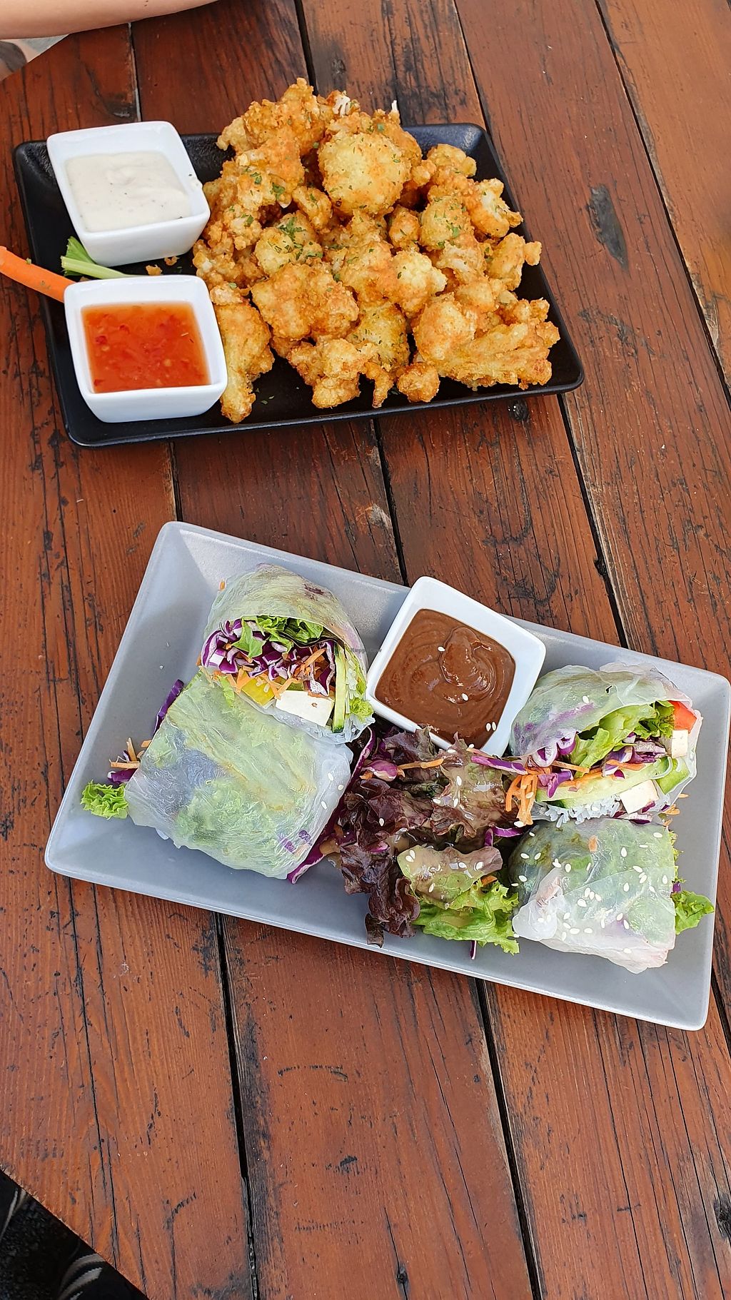 Fried spring rolls, BBQ cauliflower wings and quesadillas