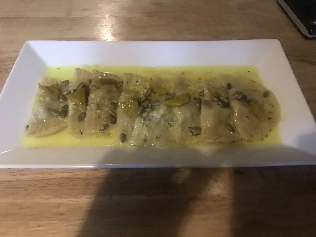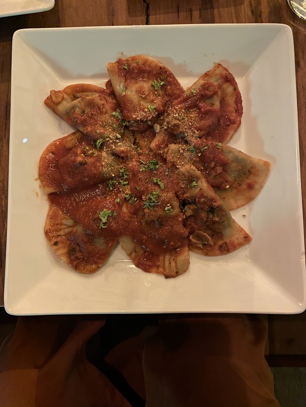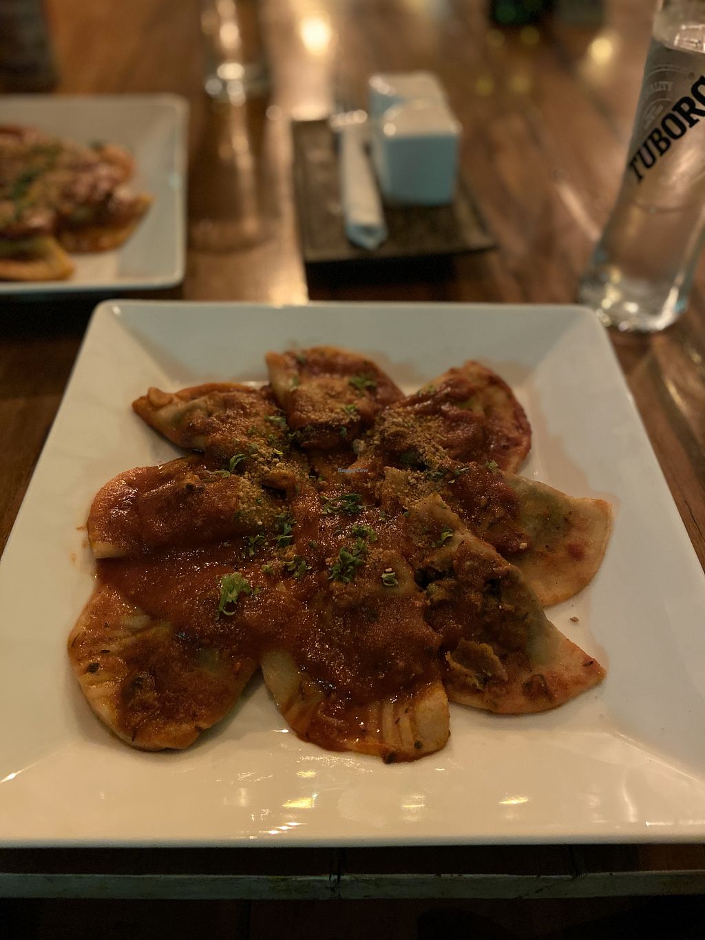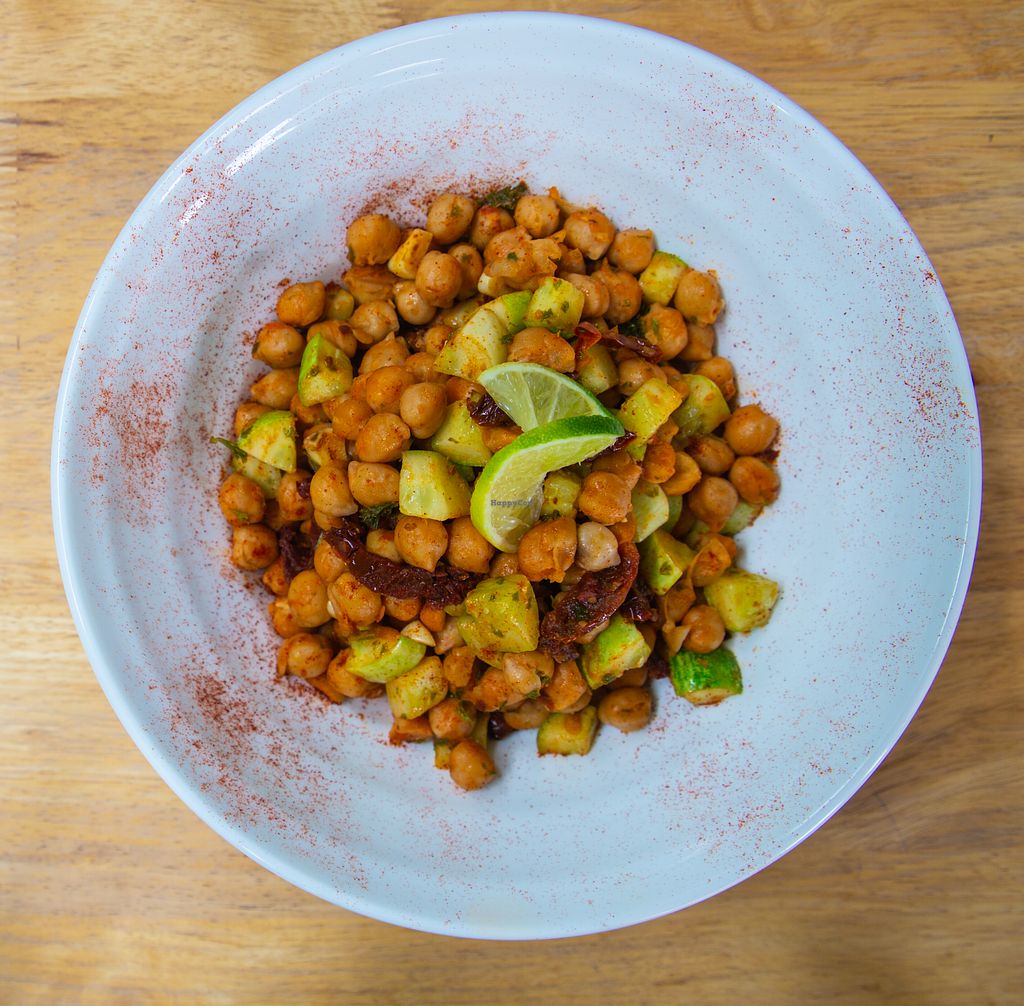 Jackfruit bbq sandwich, mango smoothie, and cesar salad