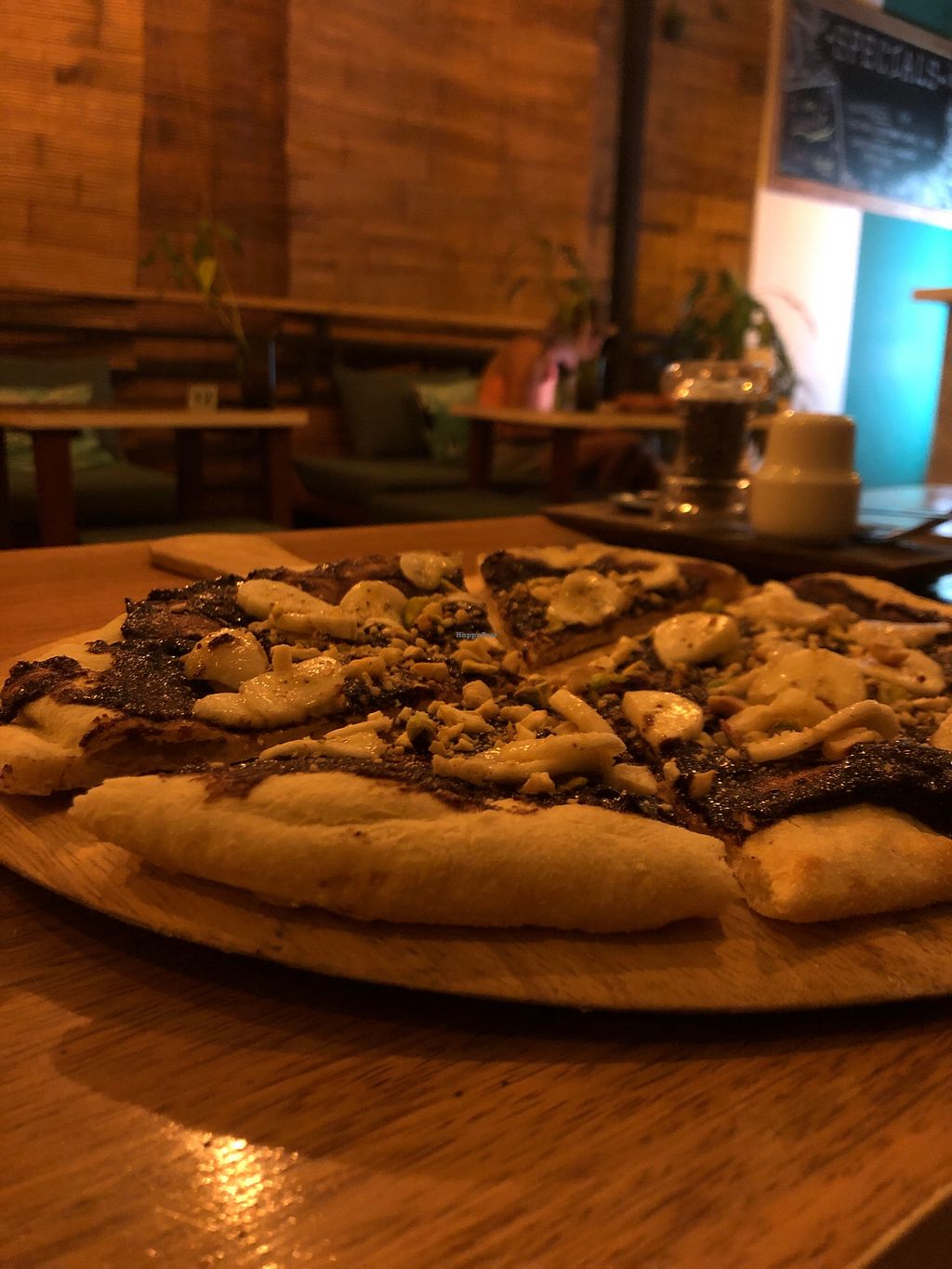 As all the reviews rave about great pizza there, we went to try it yesterday. I had pizza Vegetale with eggplant, zucchini, bell pepper, corn and vegan mozzarela on tomato base. They didn´t have mushrooms and staff guy told me in advance and apologized for it. Well, I think the shrooms wouldn´t help anyway. Pizza was bland, dry and...just tasteless. At least some salt would help, or if they can grill the vegetables first, or use some garlic and herbs....there are options - the dough was thin and quite nice.