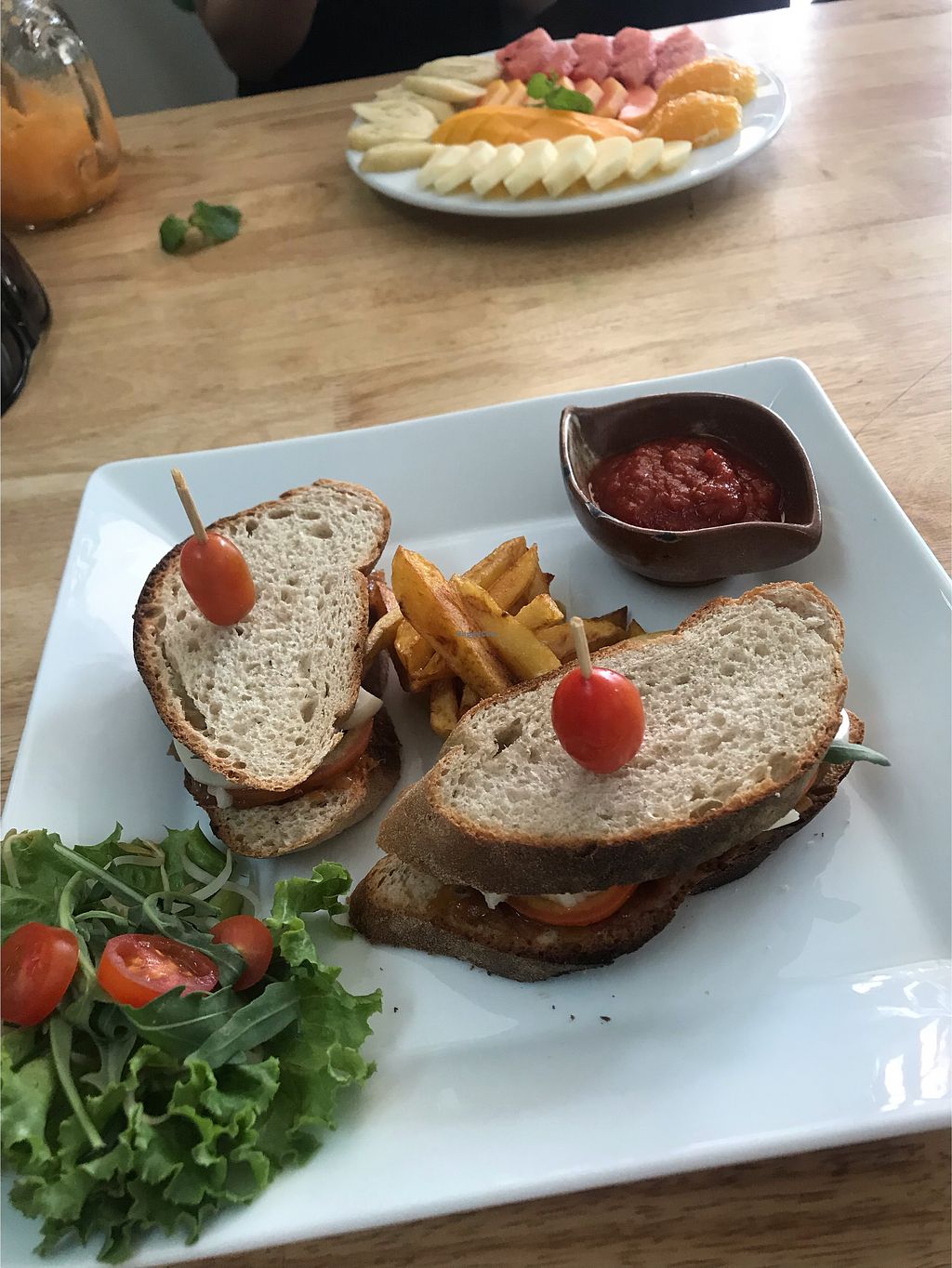 First time we went I had the mushroom ravioli, the mushrooms had no flavour but the cream sauce was very flavourful. Had the nachos and wished there was more toppings but the faux cheese sauce was really delicious. So I went a second time, this time with a local Khmer friend I had made. The owner came over and started chatting, seemed nice and was asking how to improve his dishes. So I let him know about the ravioli etc and then he said ‘no offence’ to my Khmer friend but it’s been difficult for him because his staff are ‘lazy in the brain’. WHAT? Who does that? I was shocked. No respect for his local staff or the Cambodian people. I’ll never go back again. This app wouldn’t let me give no stars and automatically gives 2 for a fully vegan place.
