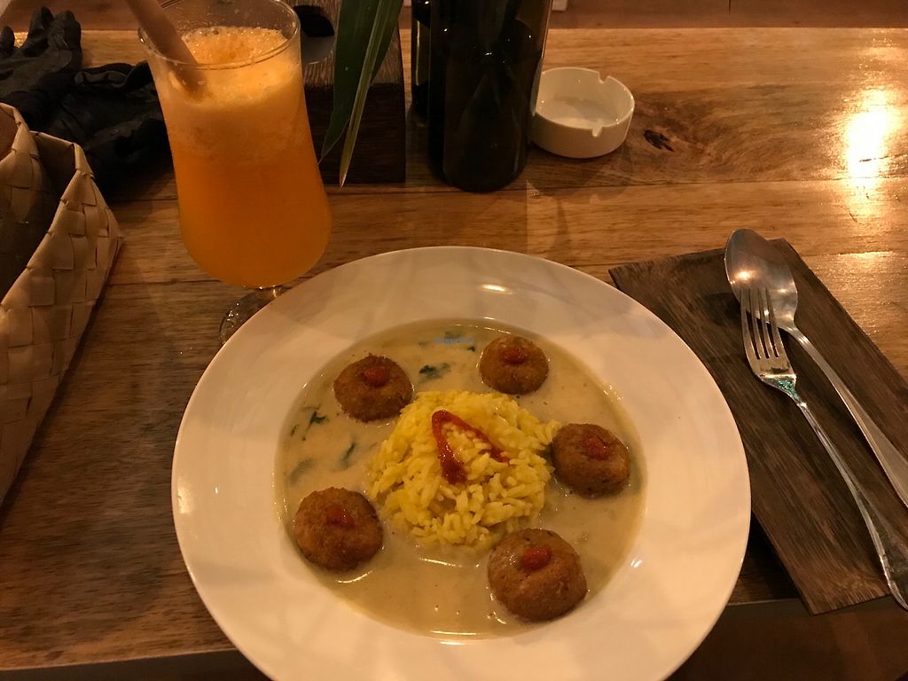 Had the tofu amok and the banana, date, and almond cheesecake for dessert. Good service, great food, and a cat who comes up for pats. So nice having a lost of vegan wines in front of you rather than scrolling through google to find out what you can have!