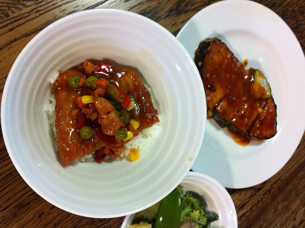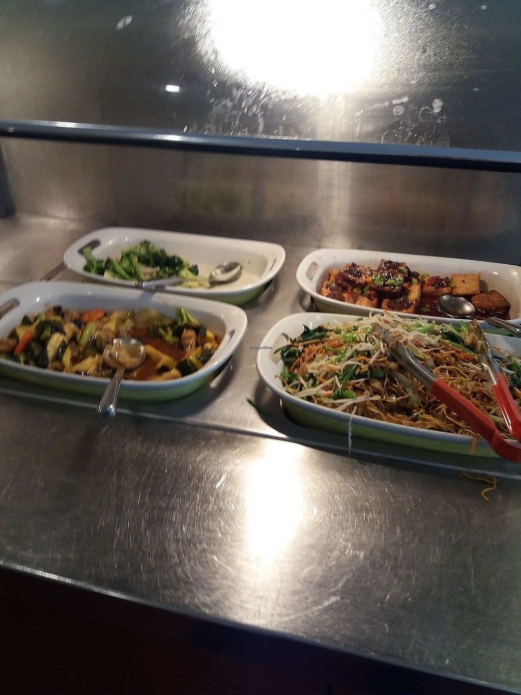 A 'pay by weight' Asian buffet style restaurant with lots of dishes to choose from. The eggplant and mushrooms are nice, quite a few mock meats to choose from, some of which just taste like tofu but some are quite interesting - the duck style is nice and the fish is interesting too. There used to be a cute little Vegan grocery shop included as well next door but sadly they've closed that part, but they still sell a few vegan home products in the restaurant and I think you can ordder birthday cakes here too although they aren't cheap.