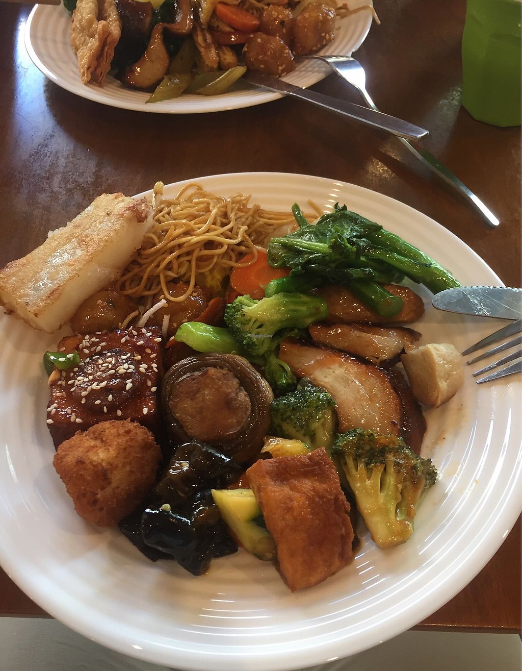 All you can eat buffet - ALL VEGAN!! Yumm! Works on weigh your plate to pay system. All food is vegan and named with meat names. Some food is questionable (I’m not a fan of fake meats), but most was really delish - espesh the steamed BBQ not-pork Buns - WOW!!! Never had anything so good! We got the Noah’s ark of the buffet (2 of everything) felt a bit sick full, but worth it!!
