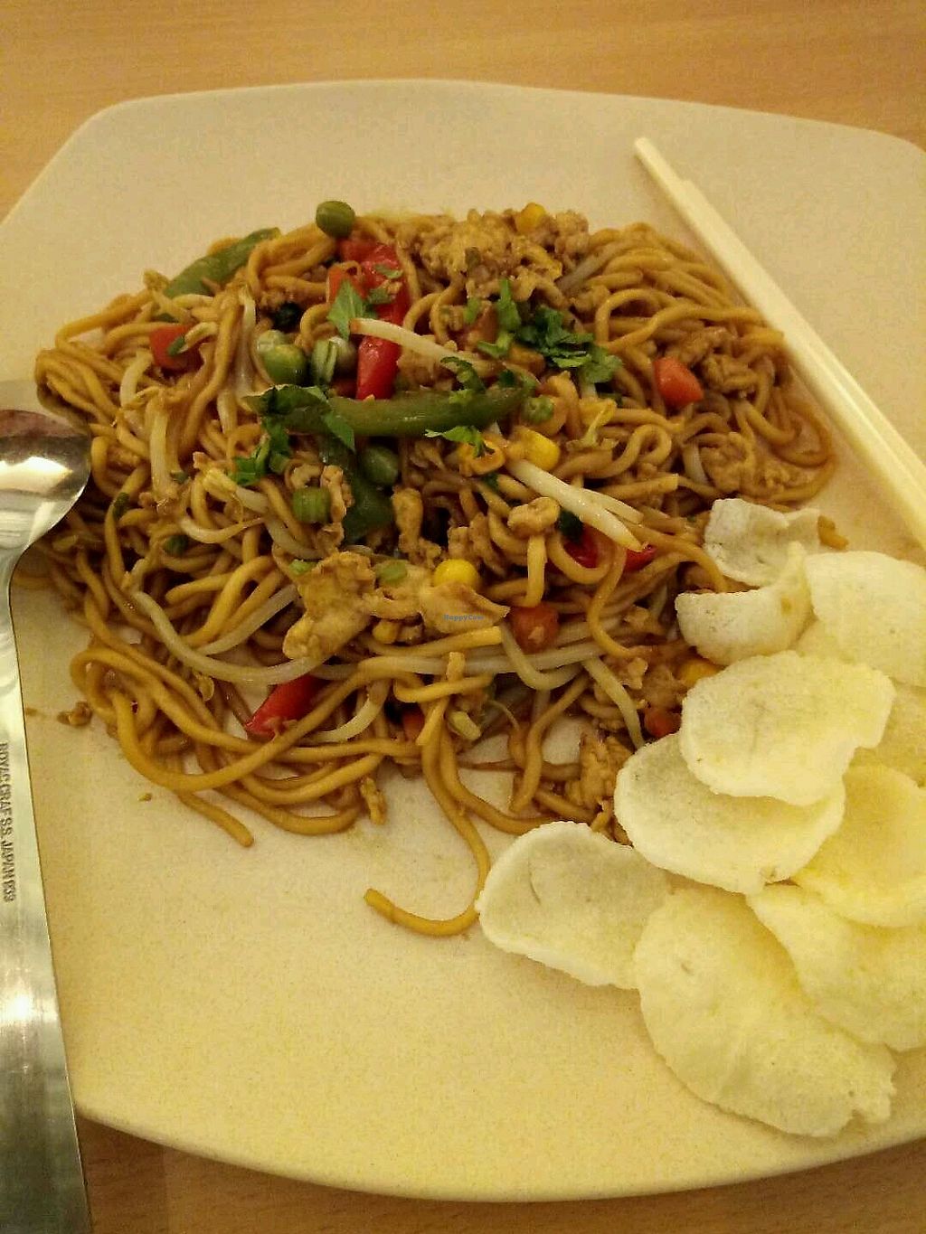 绿屋素 sells a range of local food including veg Nasi Goreng (fried rice), rice with various sides, and noodle dishes. Also offers desserts like waffles and ice cream. Reported closed December 2022.