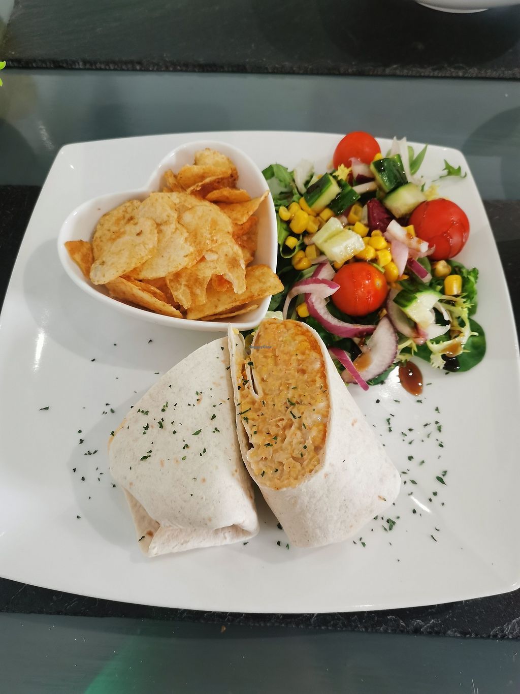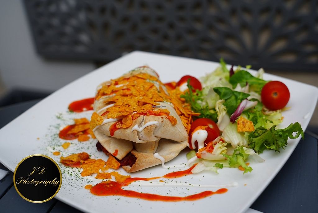 Lovely find easy 5 stars. Really nice Bistro. We stopped, well detoured here when my wife found it online on our journey home. Easy to park on the high street. 100% vegan with friendly smiling service. I had the coronation chickpea wrap which was a special. We will be back! #Veganuary