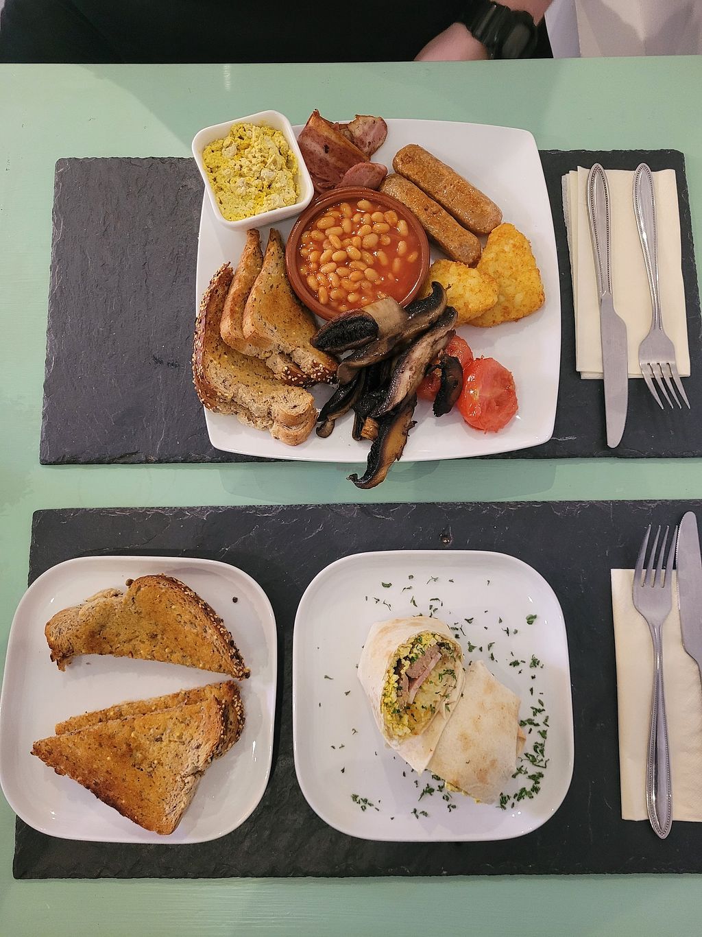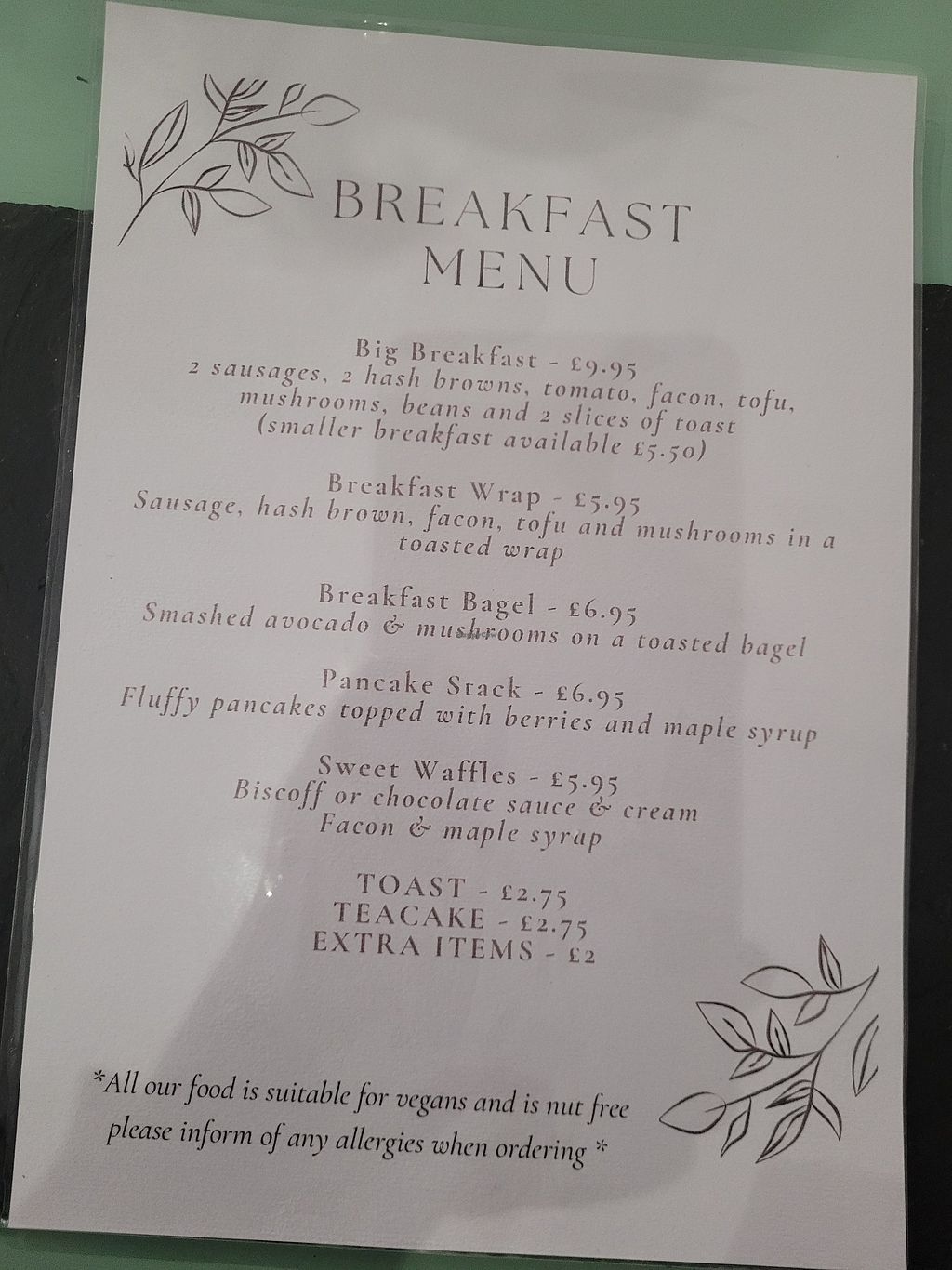 So much choice, we had 4 all day gluten free vegan breakfasts and fajitas which were lovely. We travelled from Conwy and will definitely be returning.