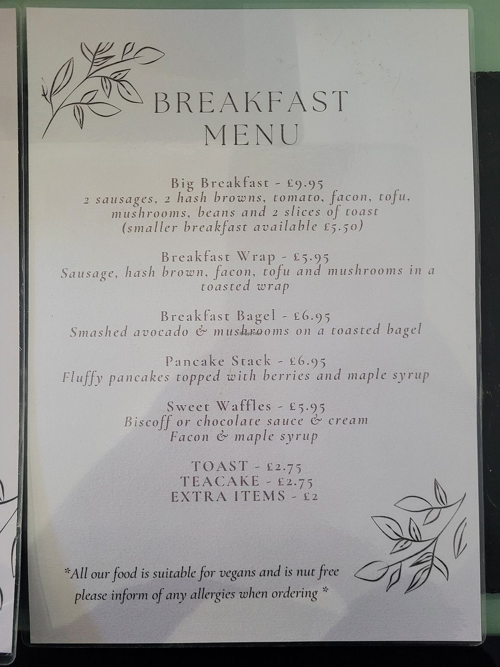 Read moreI have tried items from their breakfast, Sunday roasts, and lunch menus and have thoroughly enjoyed every dish. During my most recent visit, I had the Seitan Kebab with Fries, and it was UNBELIEVABLY good. I felt spoilt for choice with the drink options, and their drinks specials menu which included Pumpkin Spiced Hot Chocoloate or Latte was tempting, but I decided on an Iced Coffee with Oat Milk and had a Bobba Matcha Milk Tea to take away. I also took some Lemon Drizzle and Biscoff cakes to take away, and they were baked to perfection!
