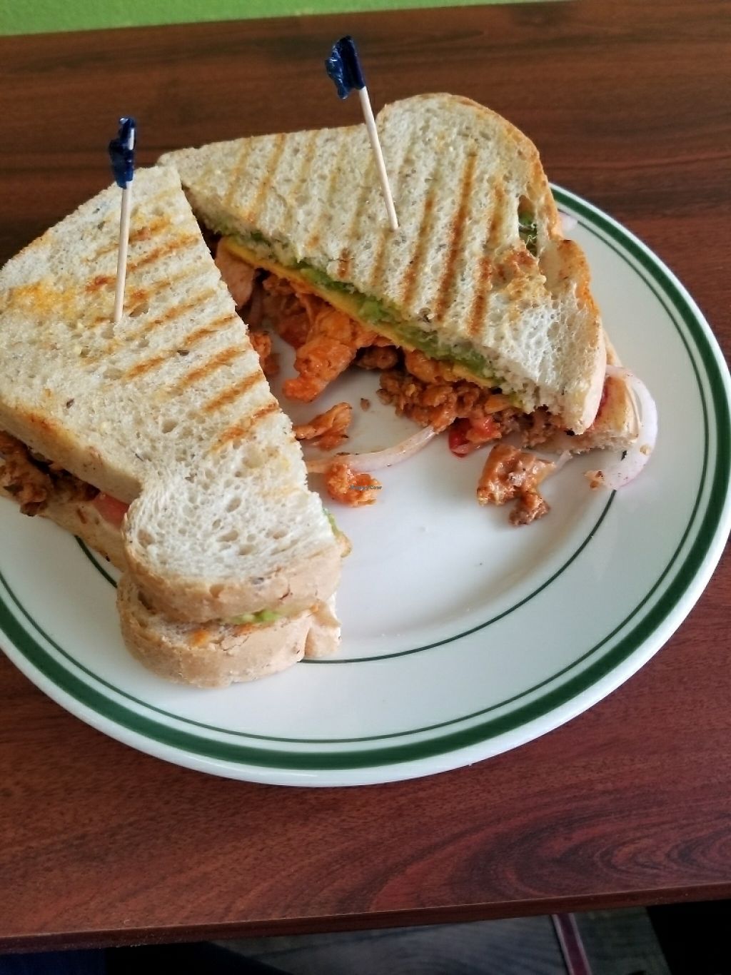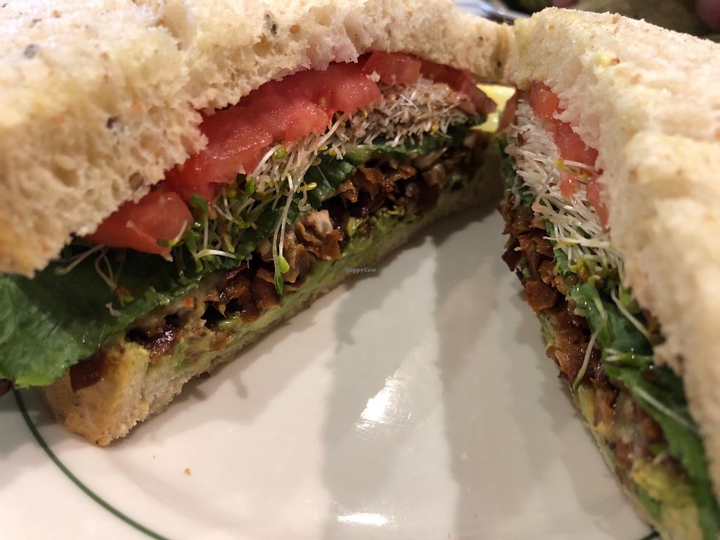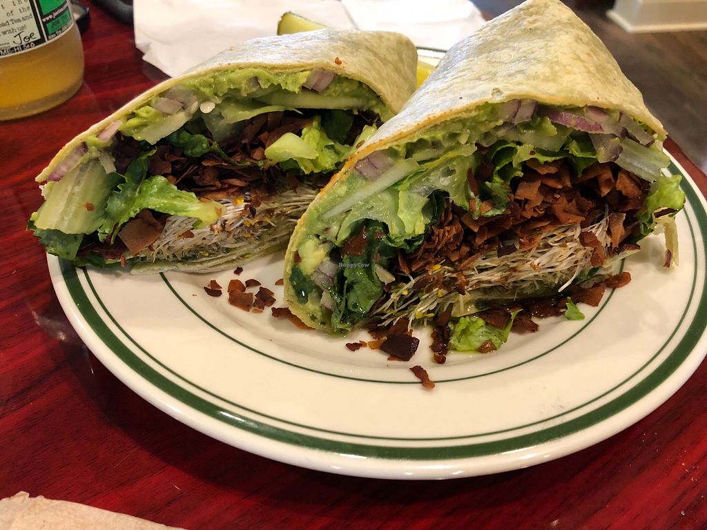 Read moreI had the Maui sandwich: freshly baked 7-grain bread, coconut bacon, avocado, pineapple, lettuce, tomato, sprouts, chipotle mayo (request vegan version). Delicious! Omnivore hubby got the Atomic Garden Veggie wrap, which he enjoyed.