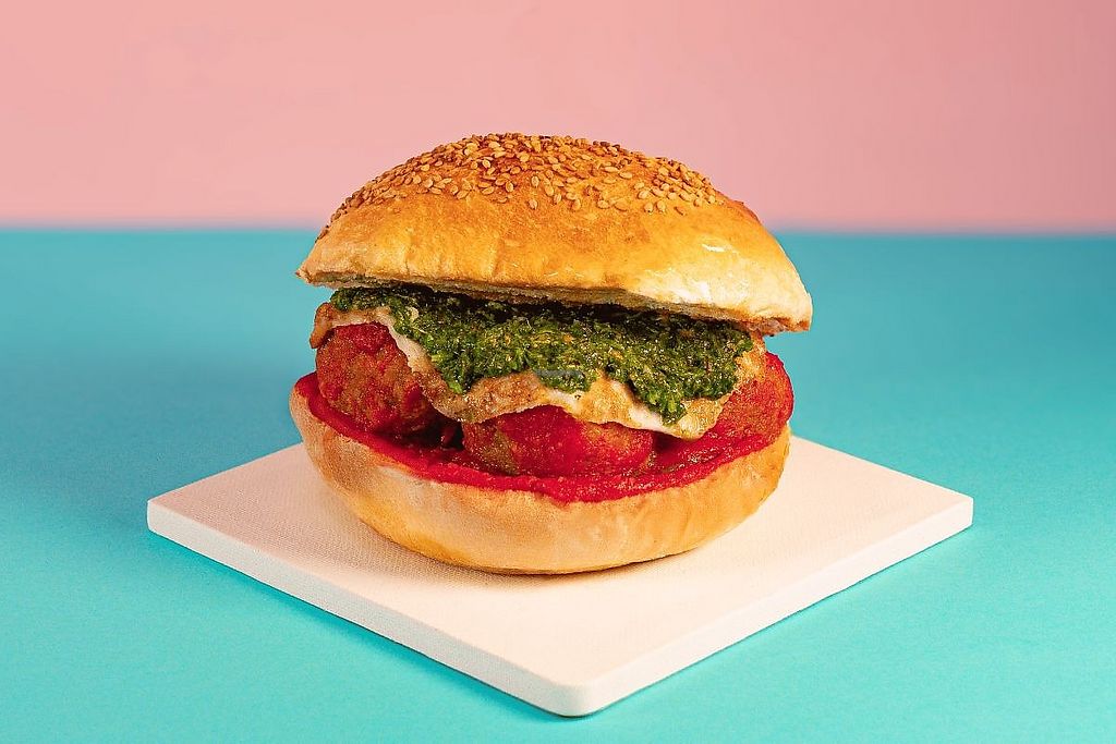 Purpetta Bun: Eggplant Meatballs in Tomato Sauce, plant-based Provola …
