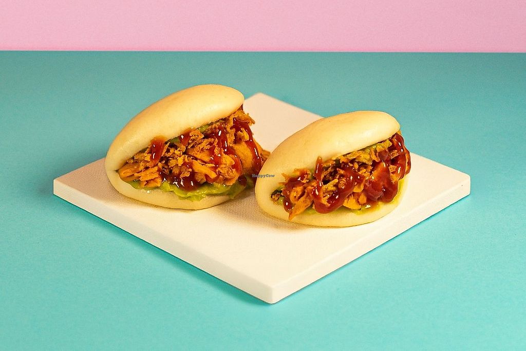 Pink Bao (2pcs): Bao bun with planted Pulled in Barbecue Sauce, Salad,…