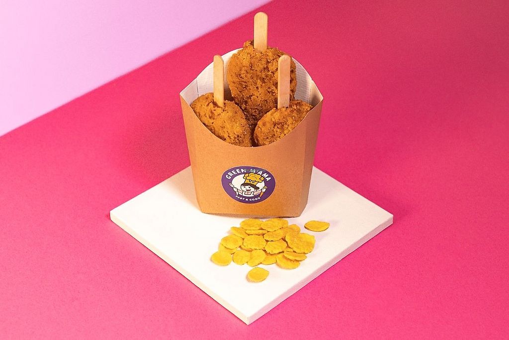 Green Bun: Cornflake-crusted spicy veg Cutlet, Lettuce, Beetroot plant…