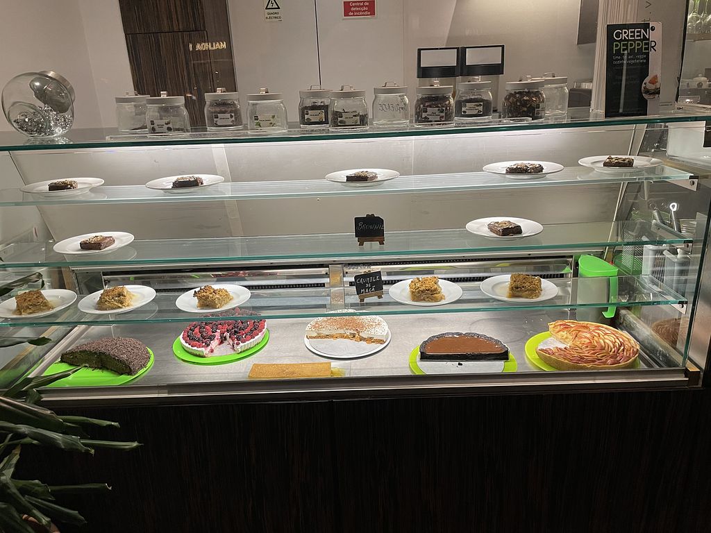 Green pepper is a well established vegetarian buffet restaurant,,, I have eaten here regularly for years, lovely staff and owner, clean and comfortable and a great selection of hot and cold food,,, 95% vegan, just ask the staff,, if you don't speak Portuguese another client will always help you,,, I love Portugal 😀. Open Monday to Saturday midday to 15.30 and 19.00 to 23.00.
