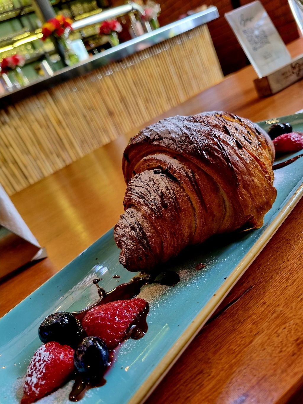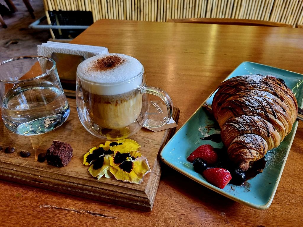 Pros: Great atmosphere, Top vegan croissant, Beautiful garden