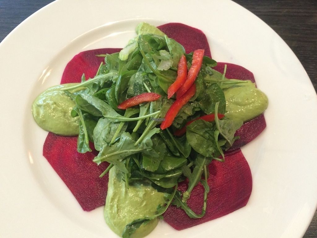 Raw beatroot carpaccio with raw cheese and nut cream