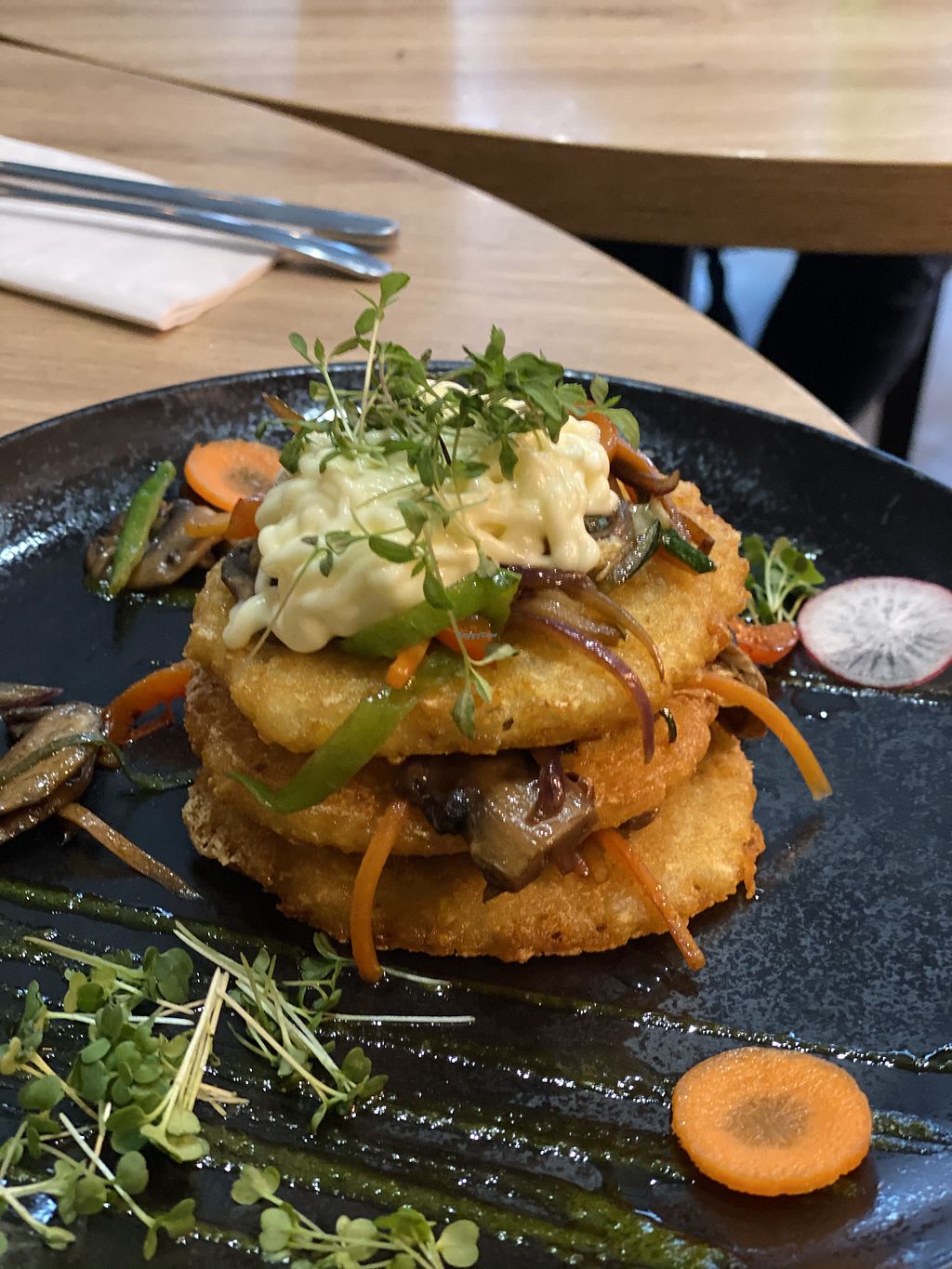 Read more- potato rosti with vegetables and garlic sauce (8€)