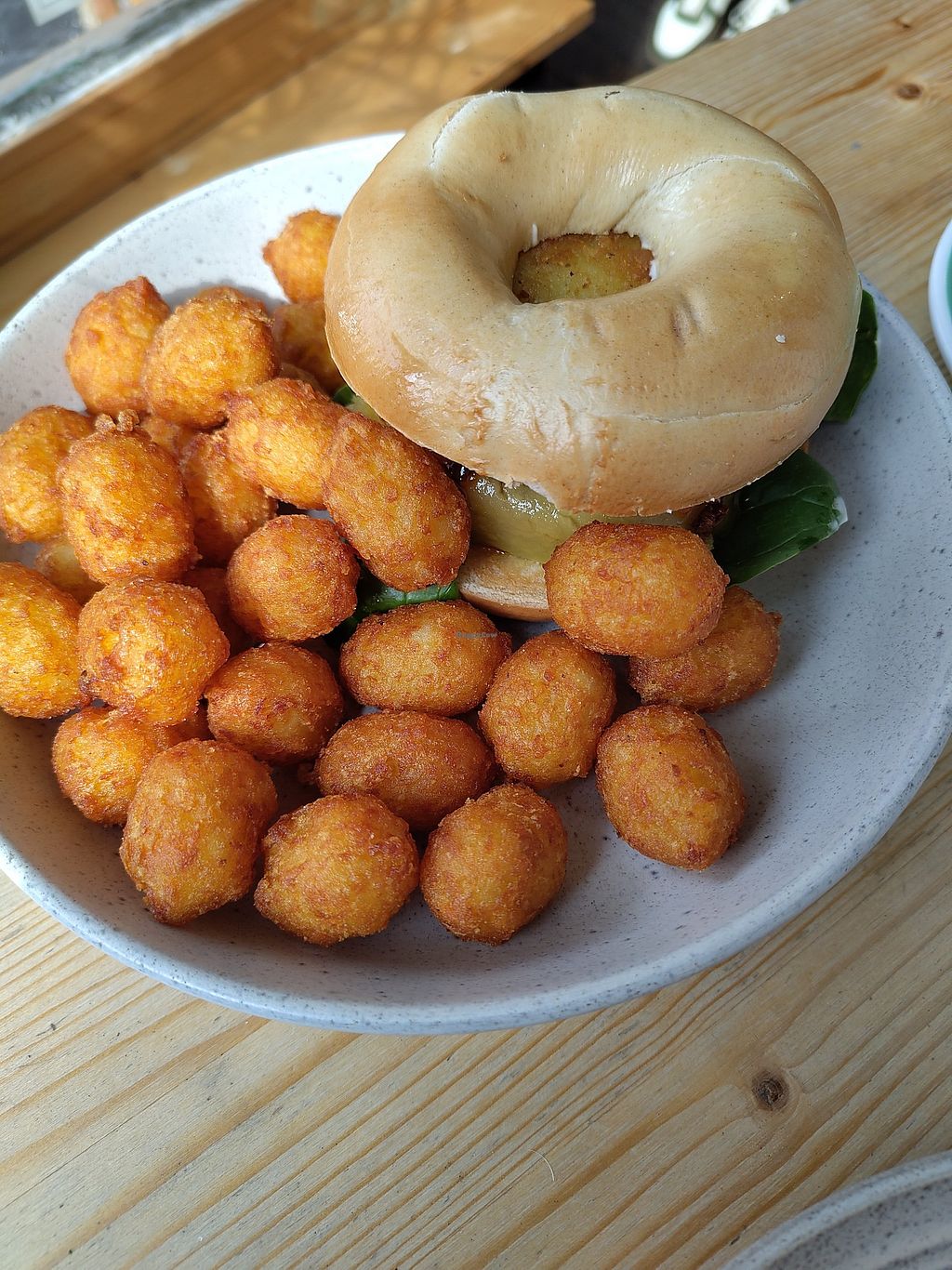 Posh beans on toast (bottom) and Bagel baby (top)