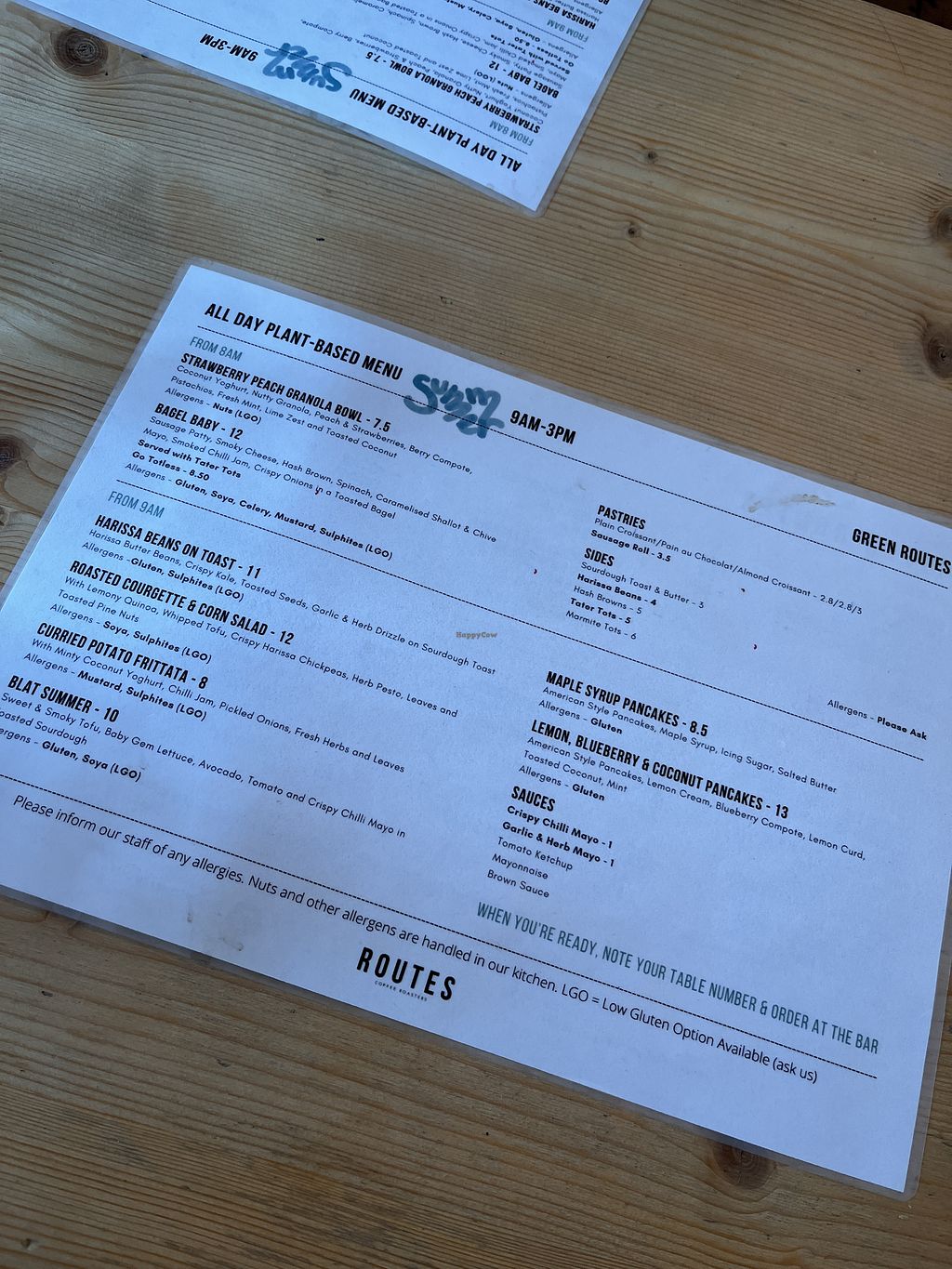 Green Routes menu in December 2024. Posh beans on toast Soup and sourd…