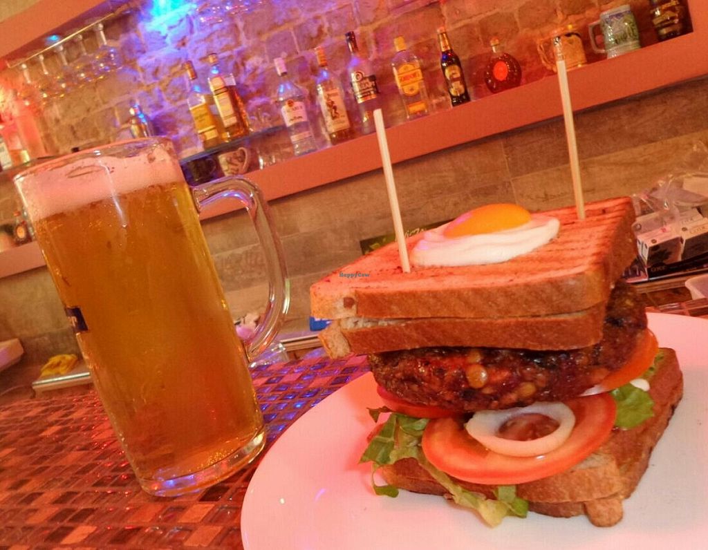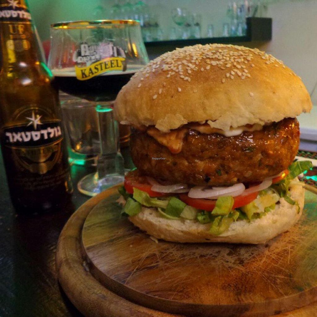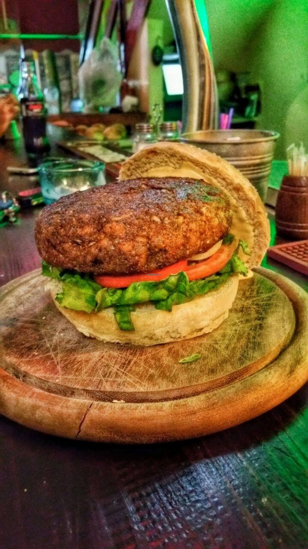 The 'Yokozuna' burger. A 500 gr (18 oz) seitan-mushroom burger with …