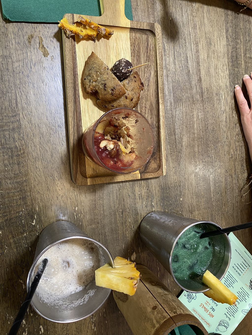 I went to Green shake for lunch and had their only vegan option, the vegan bowl. None of the burgers are vegan because the bread they use is not. The food is good, tasty, but I wish I could try a burger! I also had a mocktail (pineapple, coconut and vanilla) which was absolutely amazing.