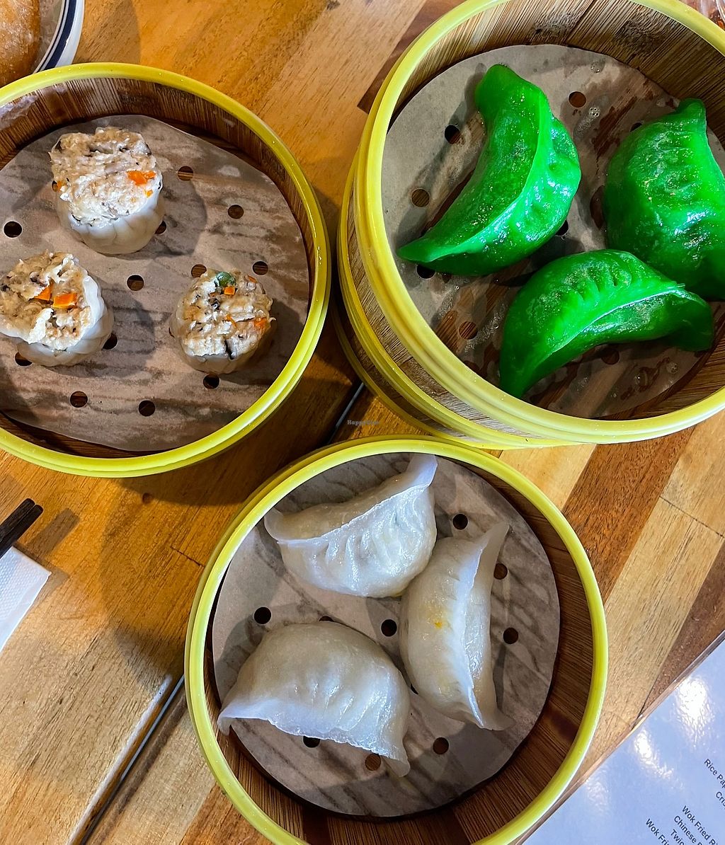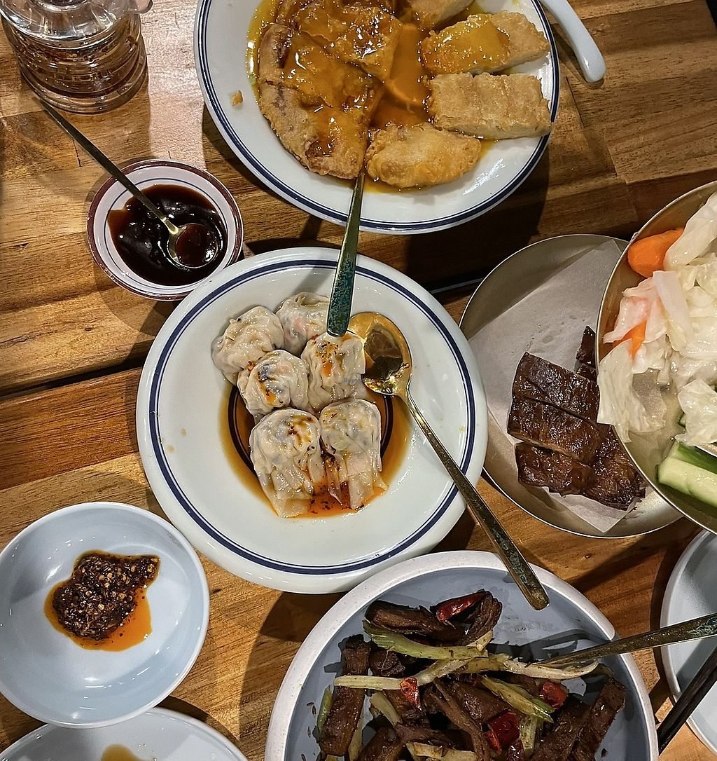Great all day yum cha. The dumplings are all super delicious as is the crispy pork belly bun and the salt and pepper squid. My favorites were the wontons. Always a big fan of a place that's completely vegan so you don't have to worry. Did could have been a bit spicier for my looking, but there's a chili sauce on the table.