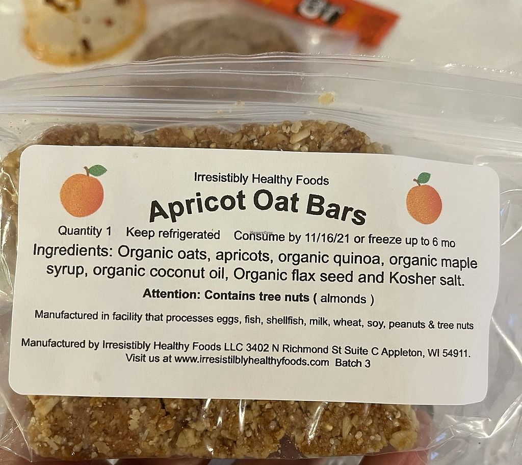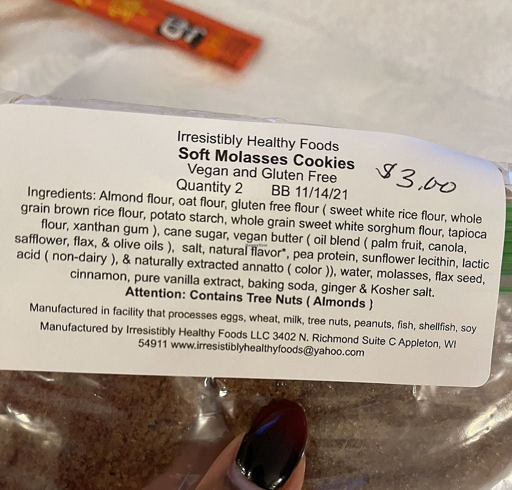 Read moreI ended up trying a vegan apricot oat bar and vegan molasses cookies. Both were gluten-free and delicious.