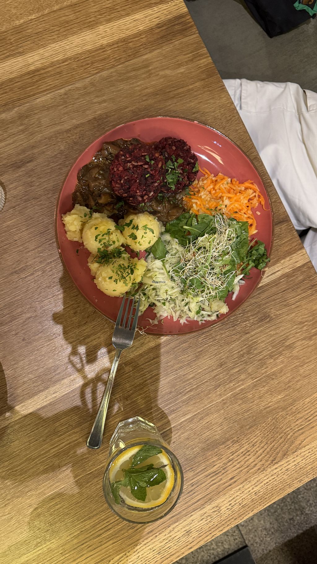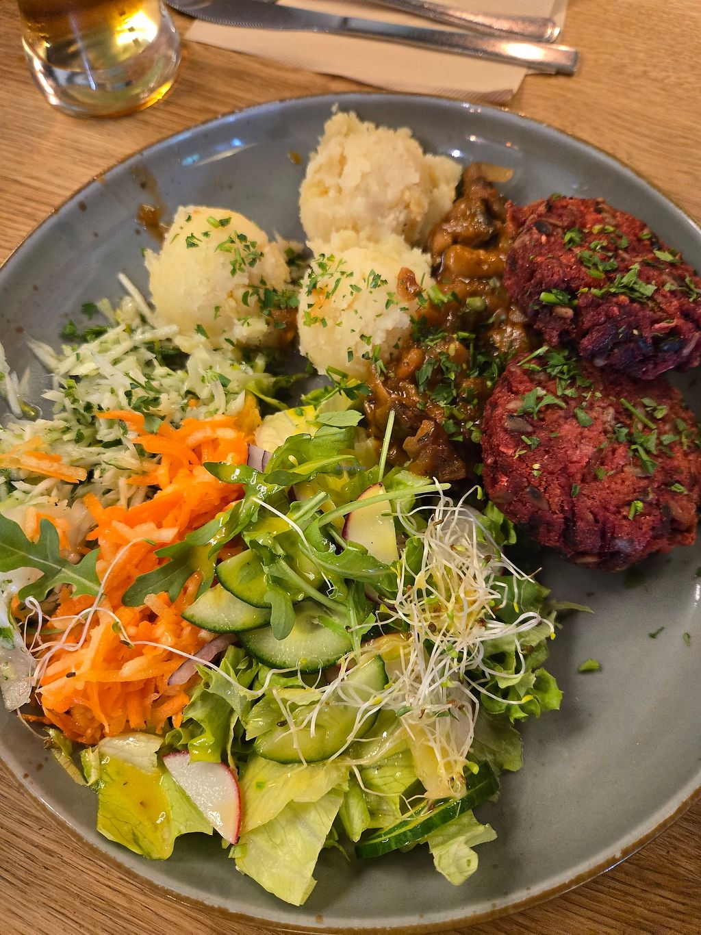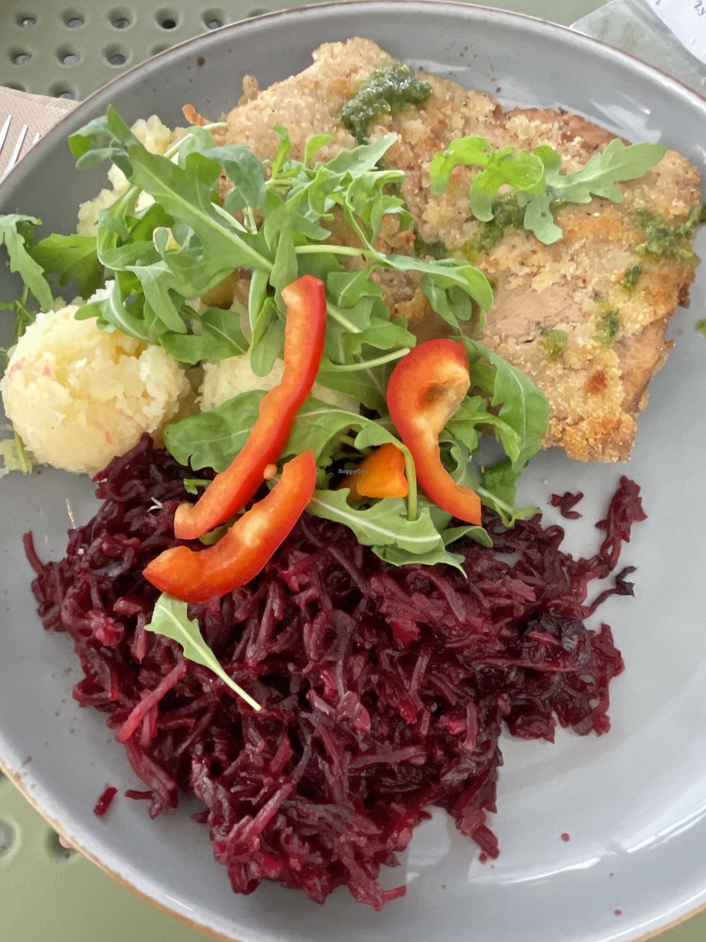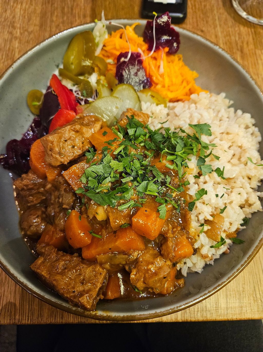 Lovely colourful and tasty food. Vegan chop, and a stew.