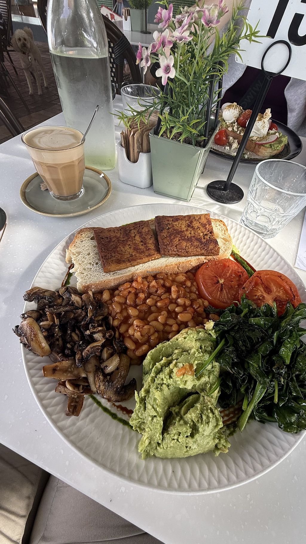 Vegan breakfast with oat latte