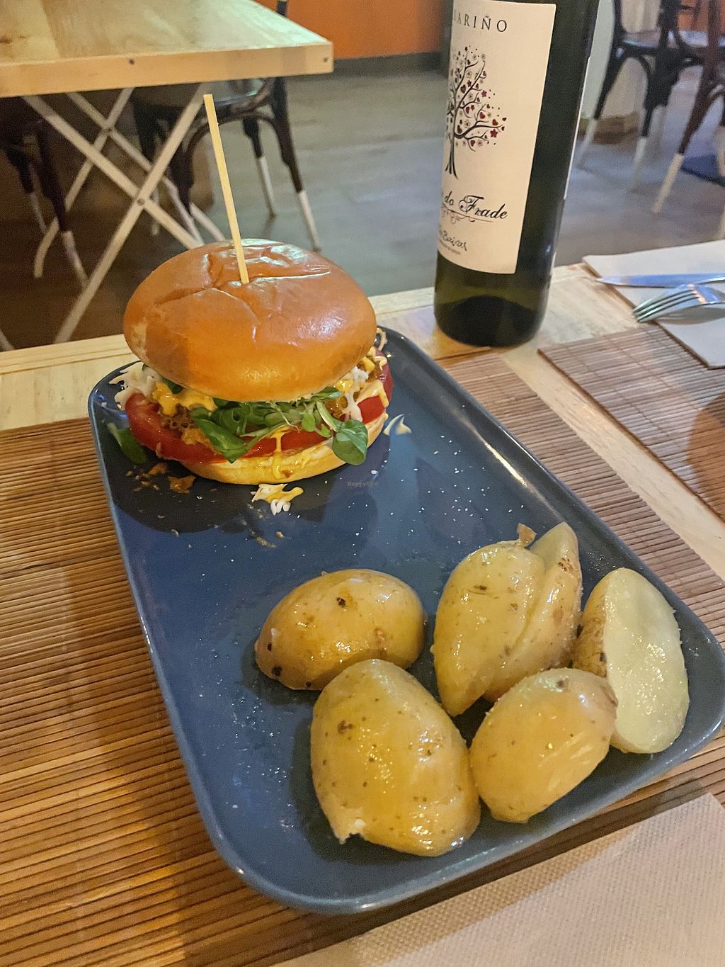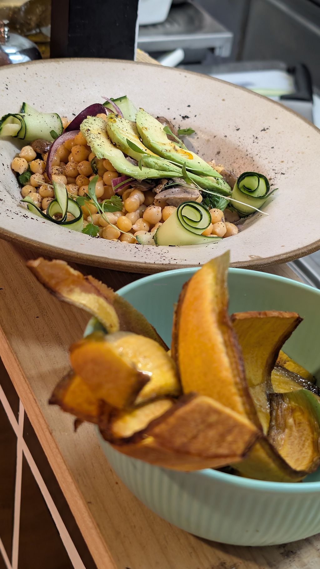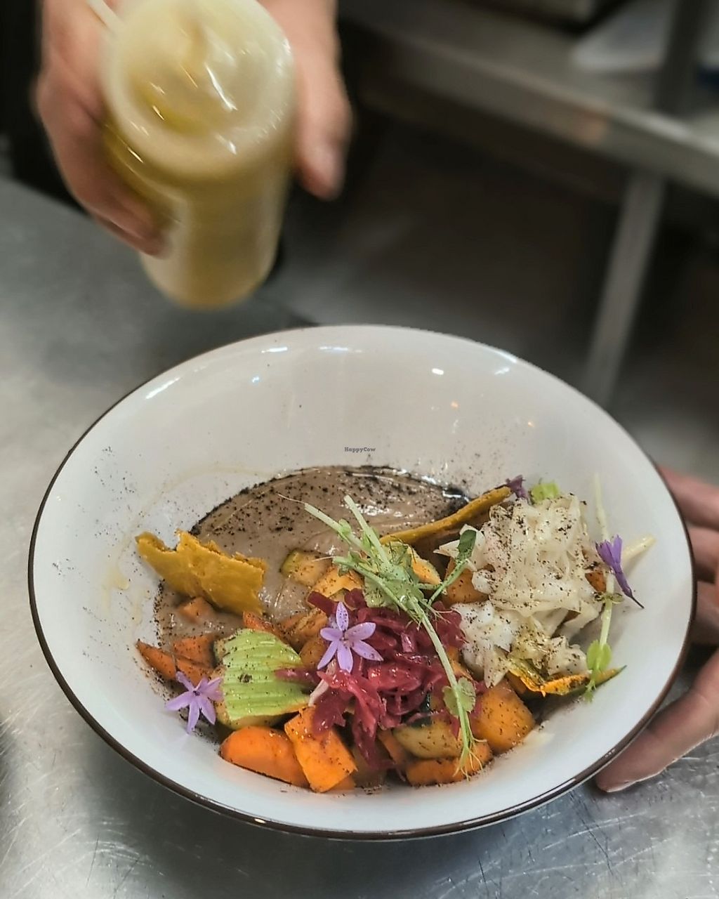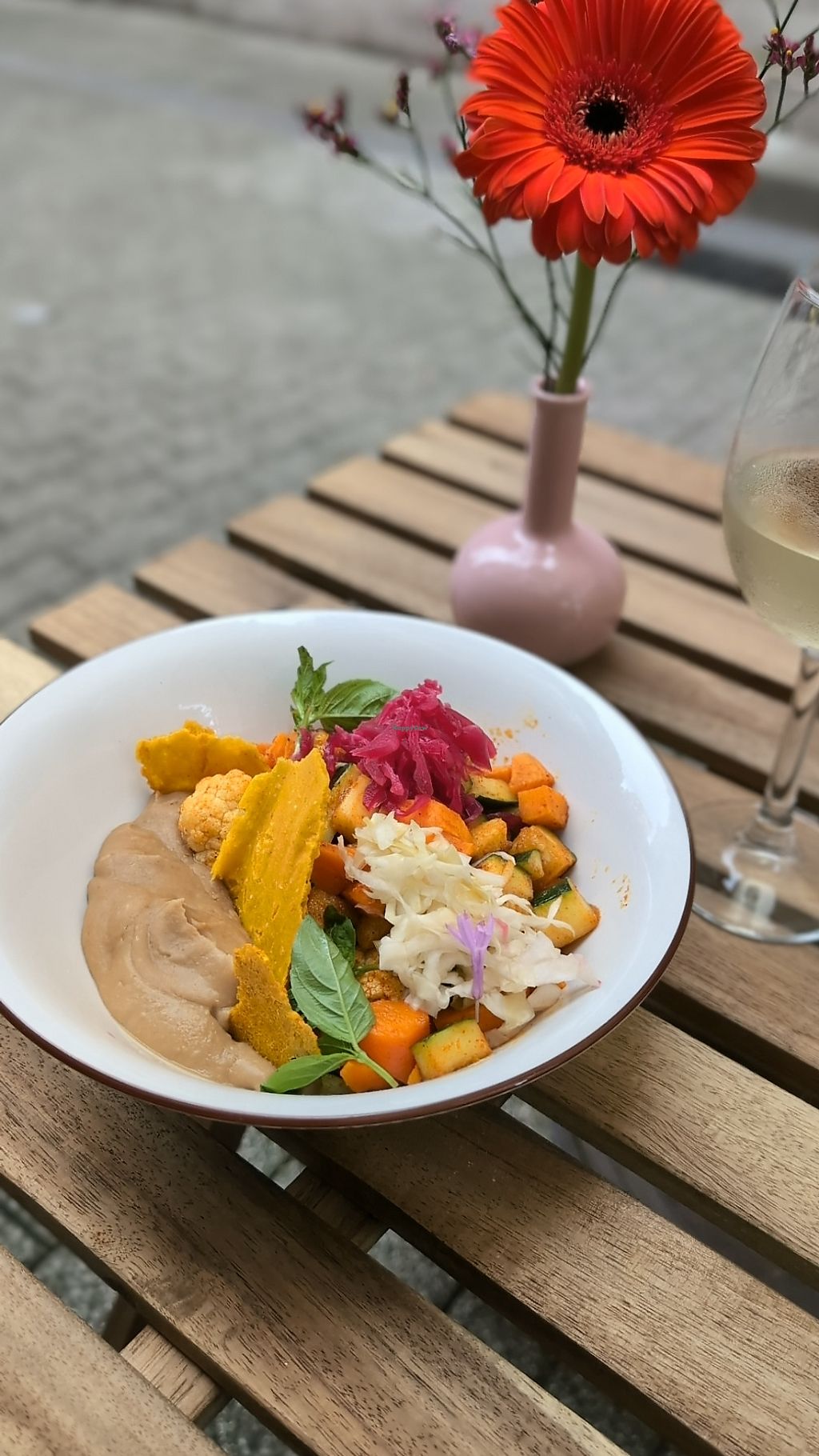 coliflor al vapor (sellada con mantequilla vegana), humus de faba, col…