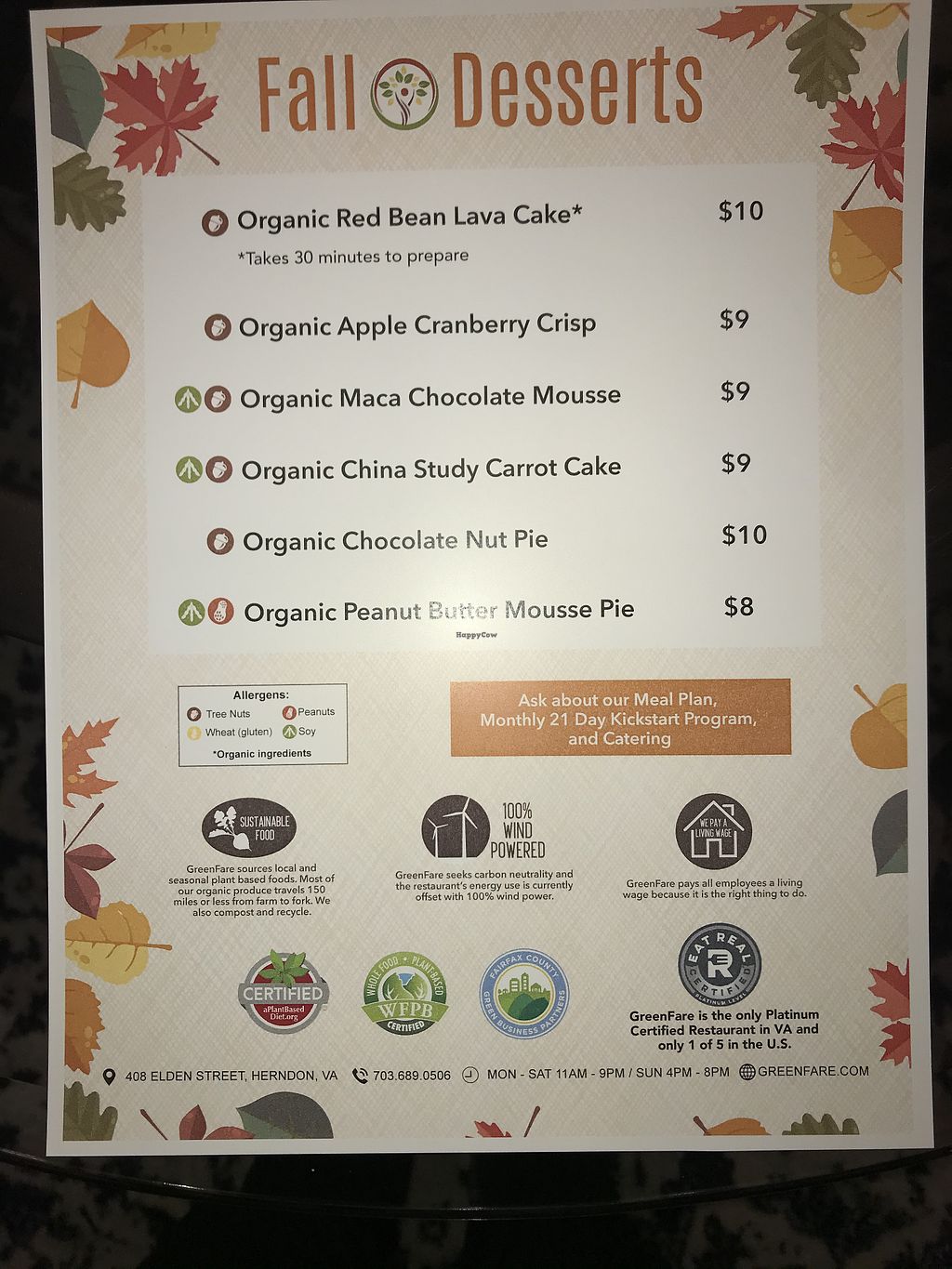Fall dessert menu