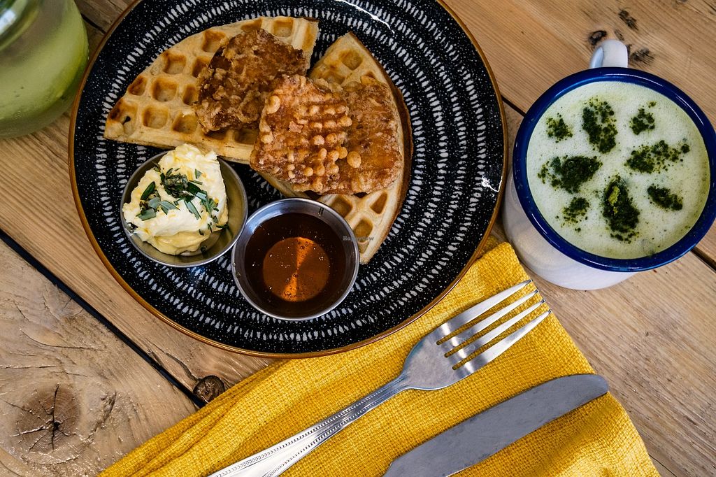 Plant based coffee shop and burger joint. Has weekly specialties such as a Buddha bowl and 'chicken' katsu. Has regular menu including house-made burgers, mock-chicken and bacon, chips, paninis, milkskakes, cooclies, croissants and sausage rolls. Brunch menu includes bagels and muffins. Reported closed March 2023.