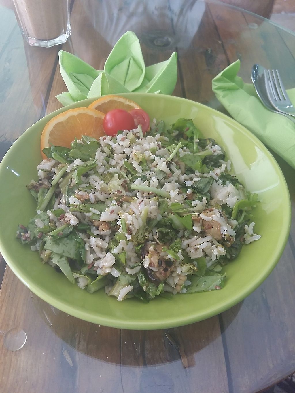 Rice or brown rice, pear, cherry tomato, rocket salad...