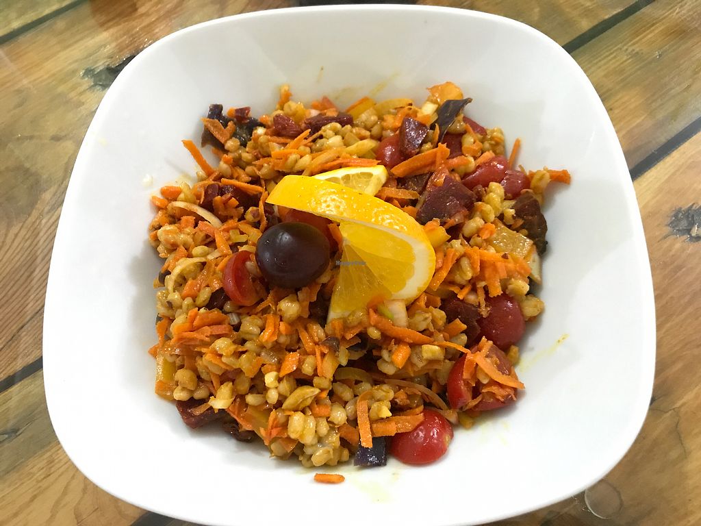 Red salad with spicy barley, perfect with an orange pineapple lemon sm…
