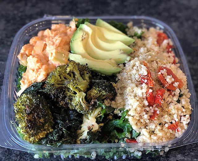 Kale Trio salad with buffalo chickpea salad, roasted broccoli & kale a…