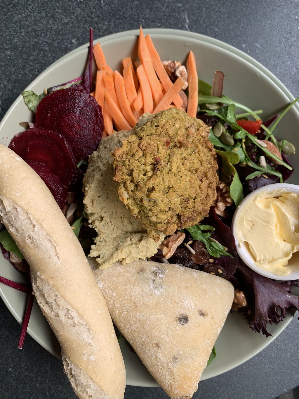 me and my family went for lunch here and it was amazing!! loads of sandwich and wrap options as well as a vegan soup!! all bread had a gluten free option as well (w/ the option of white or brown bread which I was very shocked by!!) really filling food and everything was so tasty!!