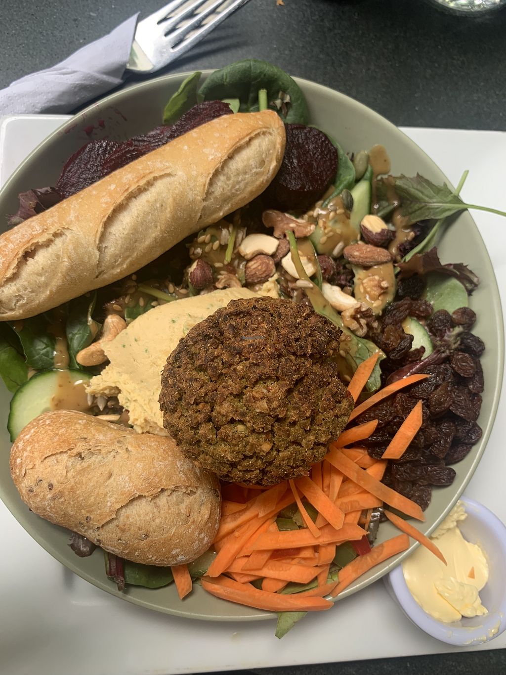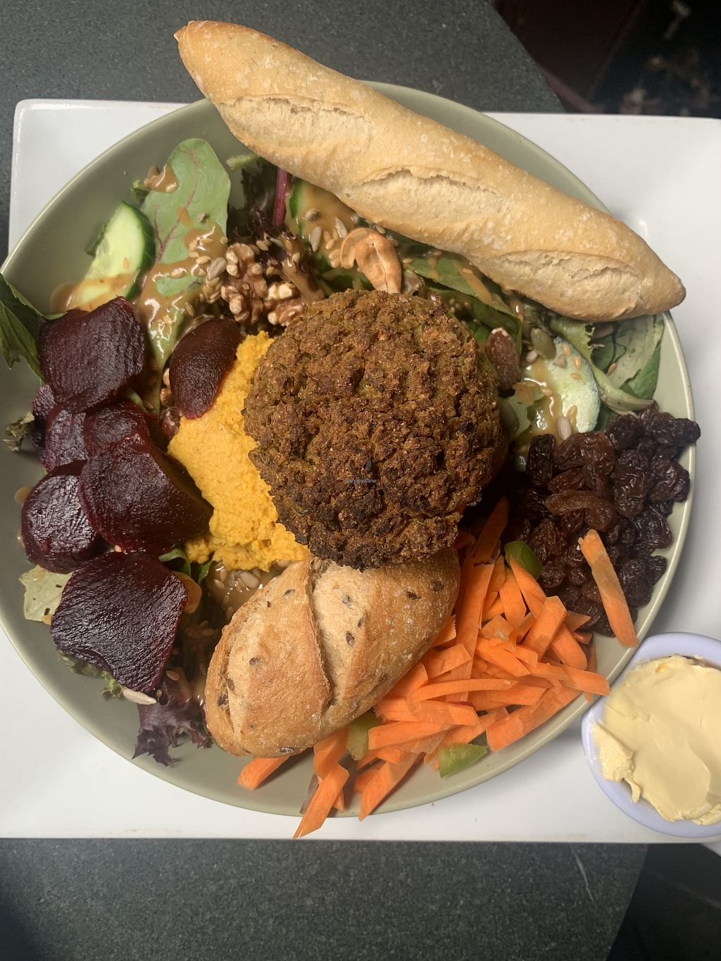 Fab meal today - vegan sausage baguette with salad and crisps - a few more options made the choice difficult - would definitely return. Very friendly too!