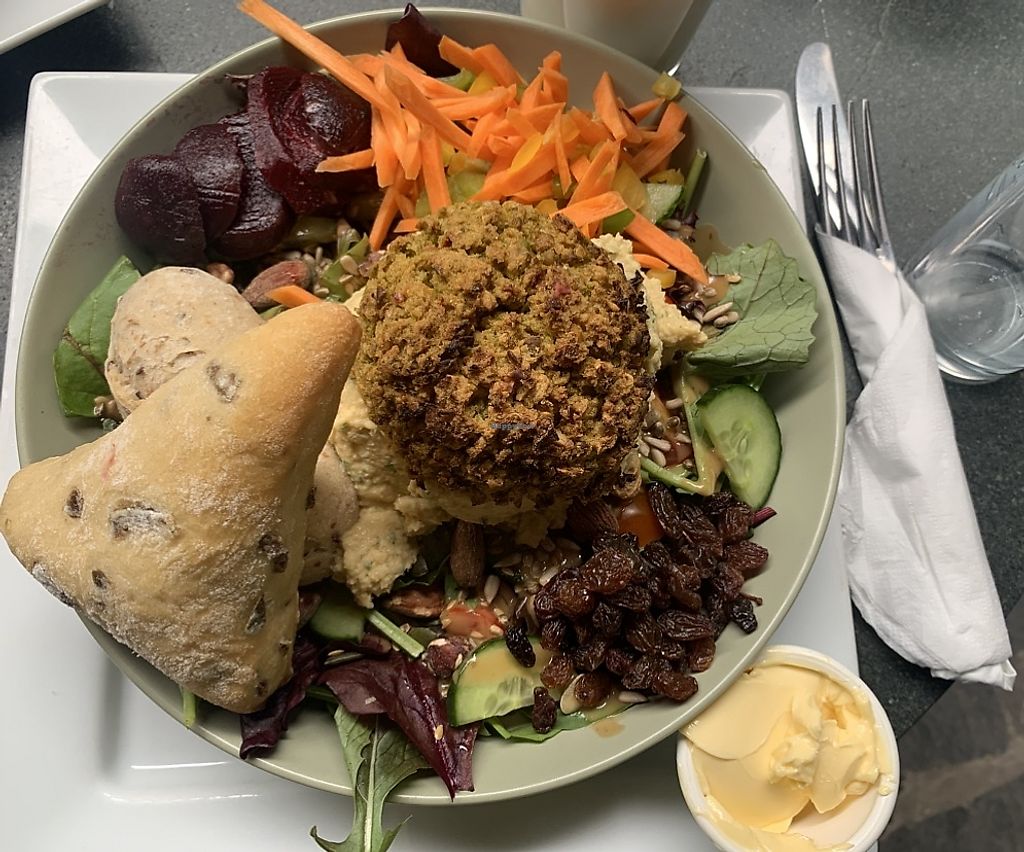 Great cafe with a number of vegan choices especially the cakes. Had soup and roll which was really nice. They ask if you want vegan spread and have always been really helpful when I’ve been