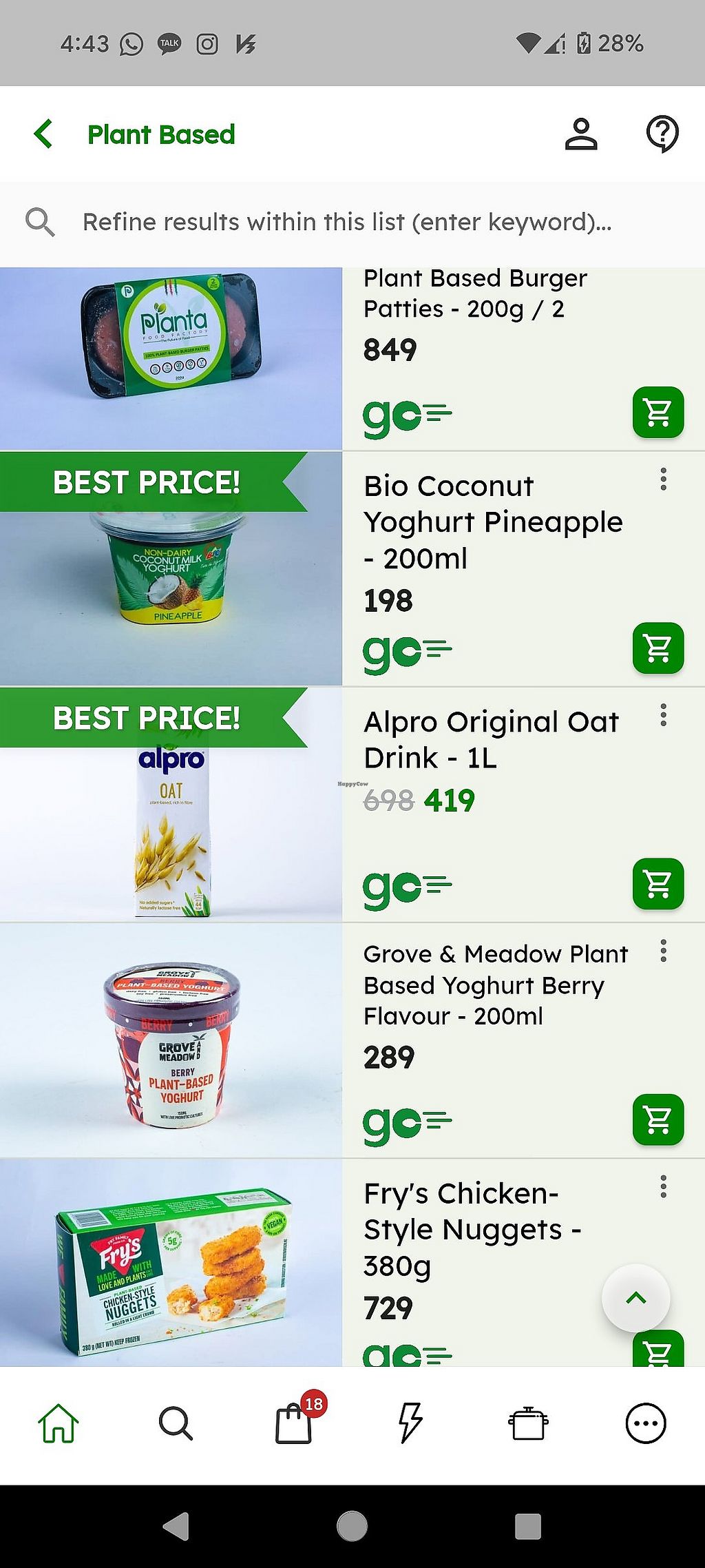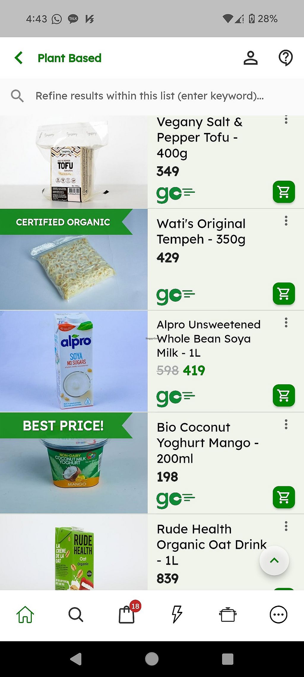 Mock meat, vegan yoghurt, oat milk