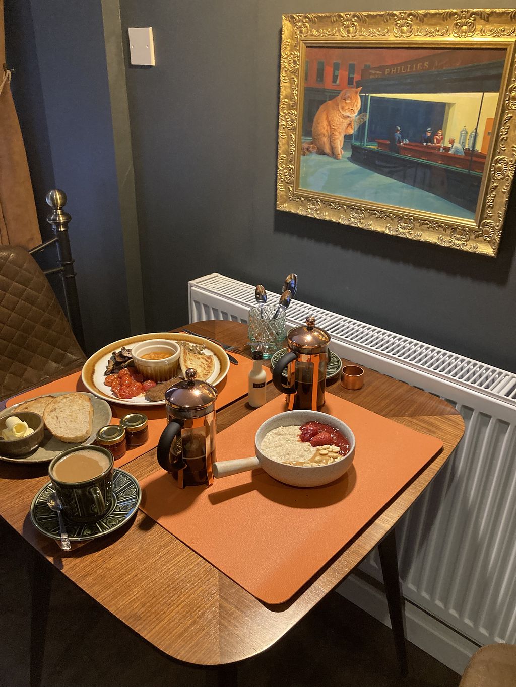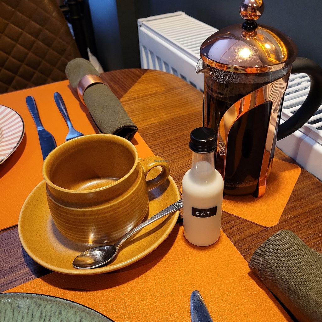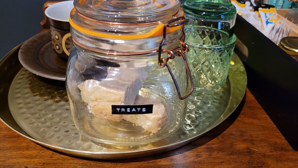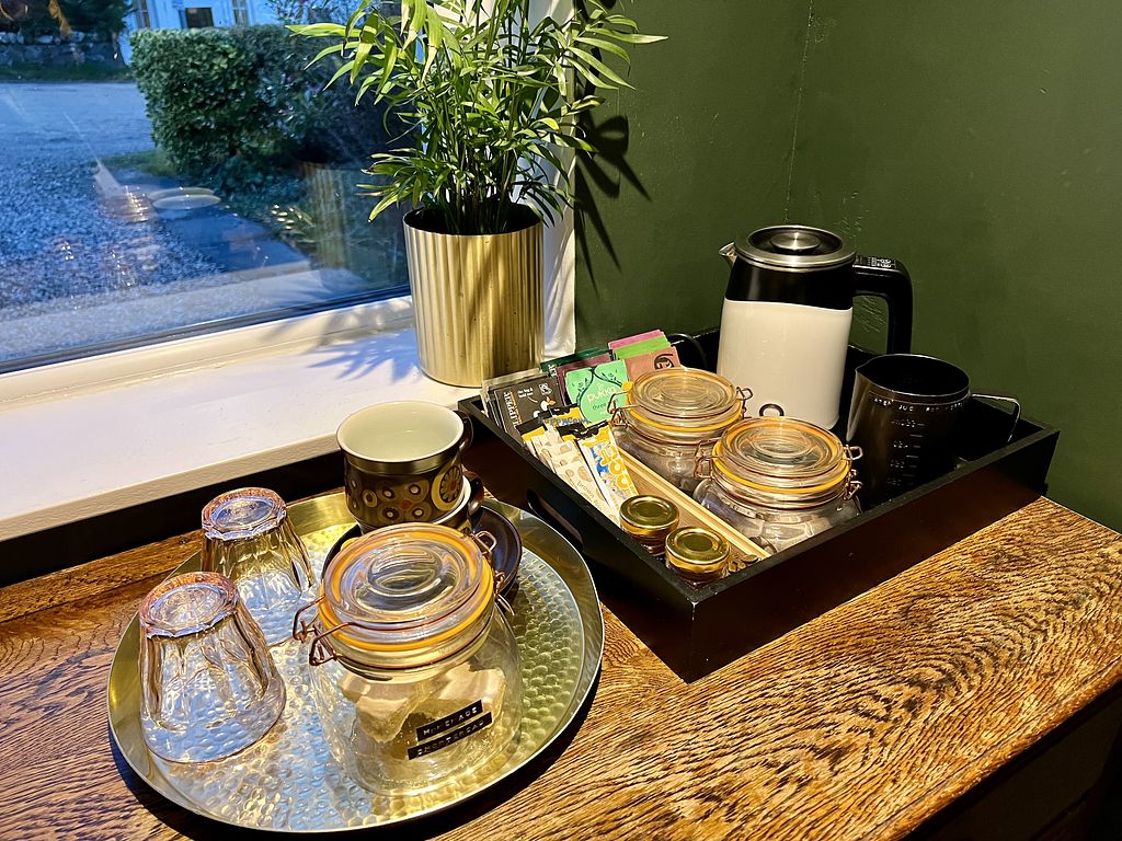Fabulous food and very pleasant experience! I highly recommend this accommodation as a destination on your Scottish Highlands explorations. Make sure to book dinners as well! Chef Chris does wonderful things with starters and mains, and Hayley excels at sweet things. A slice of delicious cake was offered on arrival. I stayed three nights, so was able to try all the starter and main options. I enjoyed all the meals - it’s well worth choosing the traditional Scottish dishes, which currently are haggis tarts with neep purée and raspberry relish, and cullen skink with smoked ‘tofish’. I really liked the miso tofu skewers…and everything else. Satisfying breakfasts and excellent picnic lunches, which include a delicious, generously sized, homemade, trail-mix bar. The in-room tray provided homemade shortbread, teas, coffee bags (including decaf), hot chocolate and oatmilk sachets.