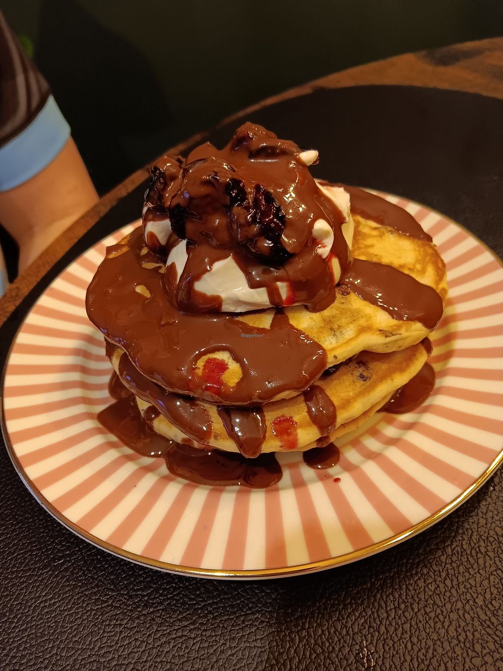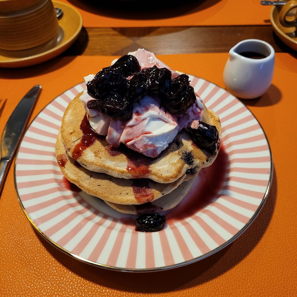 We had the Breakfast special which was Black Forest pancakes with cherry compote, yoghurt & chocolate sauce. We also had the continental breakfast; a Sausage & tofu sandwich & a Scottish breakfast