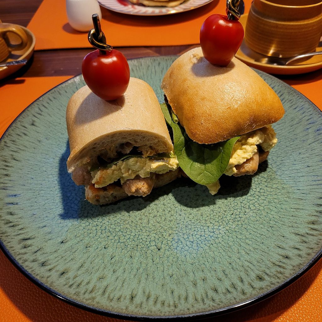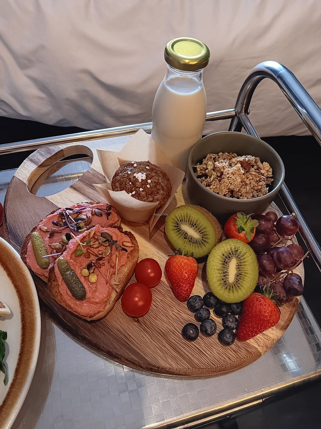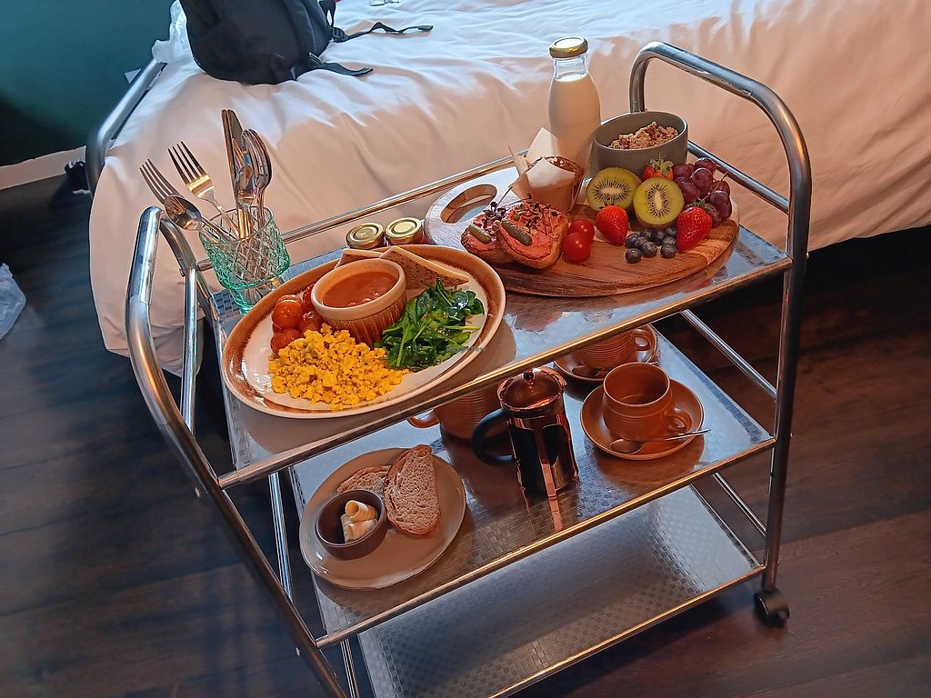 The food was amazing. Next morning breakfast was brought to our room. I had the pancakes and my mom the ciabatta. Both so delicious.