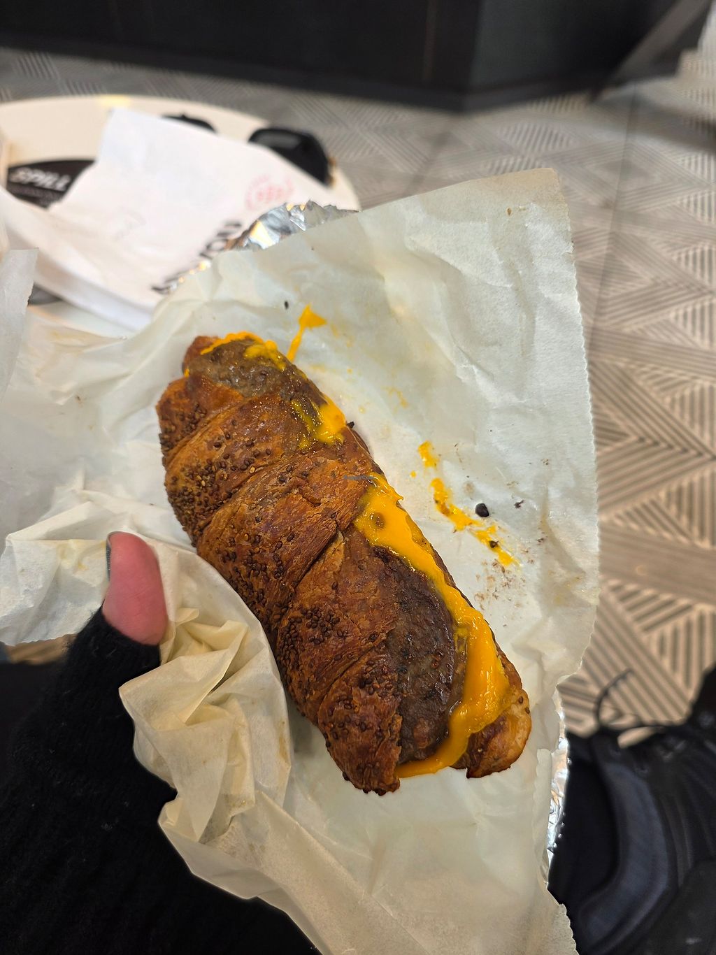 Doesn’t look that great but it was…. a vegan croissant with cheese, bu…