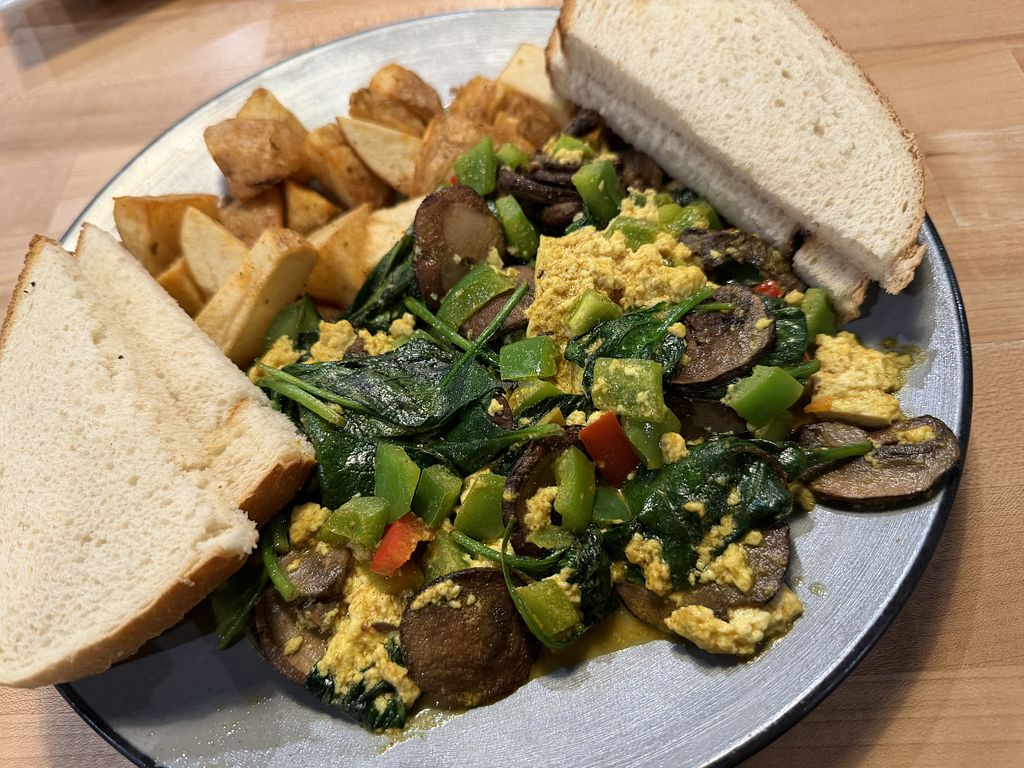 No Huevos Ranchero and Tofu Scramble were both delicious and LOADED with veggies. Coconut Banana French Toast was really good as well.