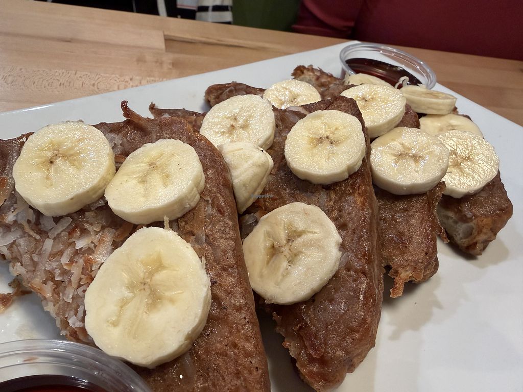 On our way our of the Lehigh valley we stopped at Griddle 145 for breakfast, which seemed to be the only breakfast place listed. There were tons of cars in the lot, so we thought the place must be good. We ordered the coconut banana french toast and the no huevos rancheros. First, all the condiments (and I would guess the guac too) come in individual packaged containers, this isn't good for the environment. The french toast was a big let down, I have made a coconut and banana french toast at home and it turned out incredible, perhaps my expectations were too high. There was a coating of shredded coconut on the outside of the bread and some banana slices on top, but the bread was basically thick toast. French toast is meant to be soaked in a batter for hours so it can get creamy, this was dry and flavorless. The No Huevos was decent enough, but the guac seemed like it came out of a bag. If we return to the Lehigh valley I would hope they can improve or another breakfast spot pops up.