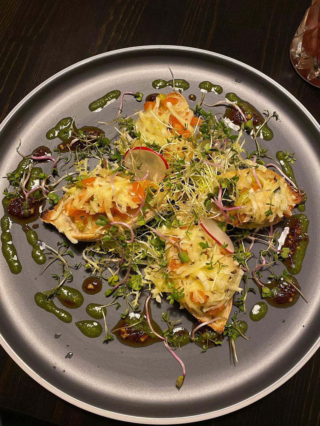 Demolished the food before I could take pics of our main dishes! Really enjoyed our food here. Food was flavourful and fresh. Had the pasta and the burger shared between us and it was so damn good. Partner is Omni and they said it was one of the best pastas they’ve had. Nice portion size too. Pasta was creamy and very tasty. Dessert was even better- crème brûlée was really yummy (it was a bit runny but honestly had lost no flavour). Had the rhubarb trifle as well and that was also great.