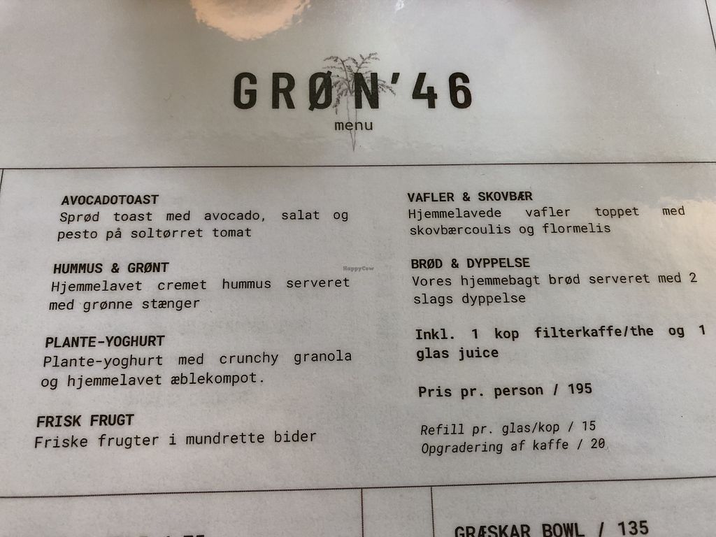 You are always greeted with a warm smile at Grøn 46 and the food is beautifully prepared and presented! Yummy!! Thanks very much!
