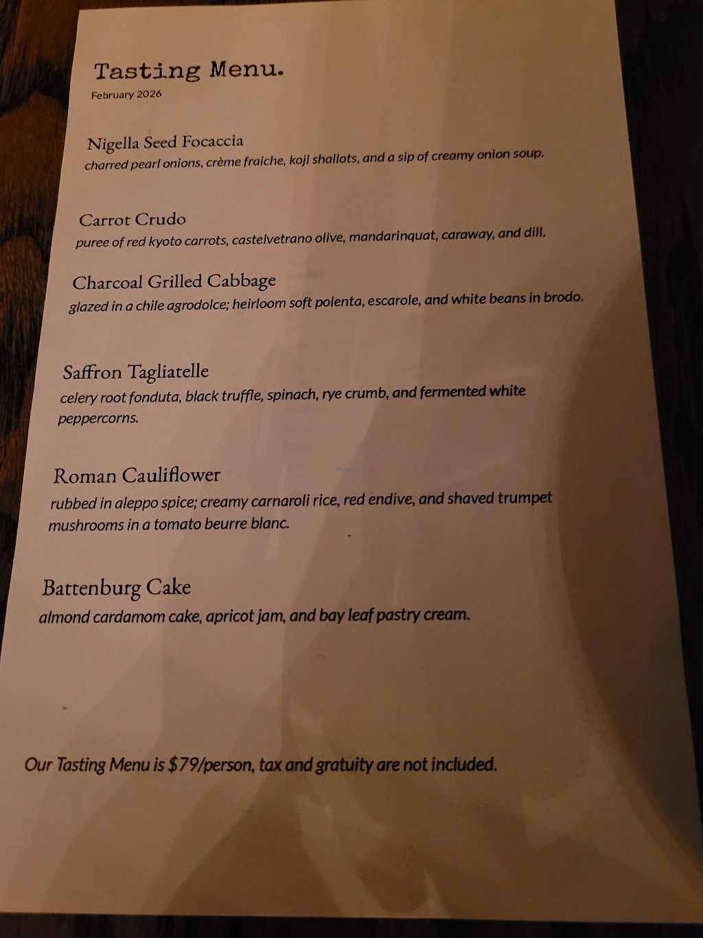 Tasting menu