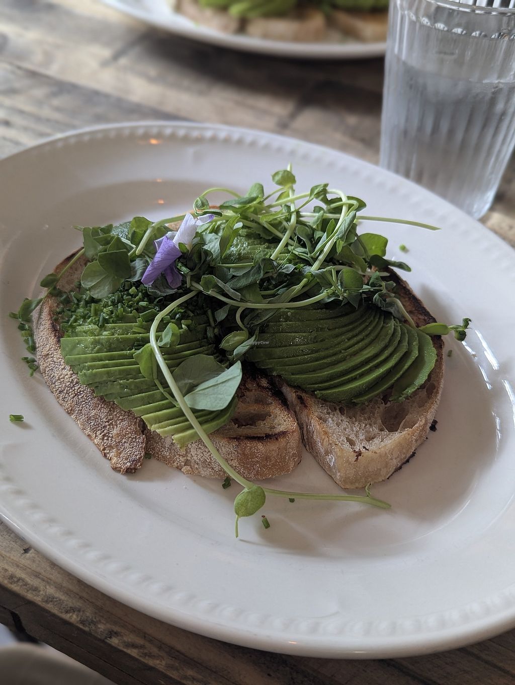 Serves meat, vegan options available. Rustic cafe with artisan style breakfast/ lunch. Vegetarian options clearly labelled and some can be adapted to vegan, Avocado on sourdough.