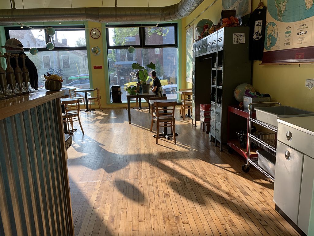 Coffee shop with plant milks (almond, soy, oat) as well a few vegan dessert options. Reported closed October 2021.
