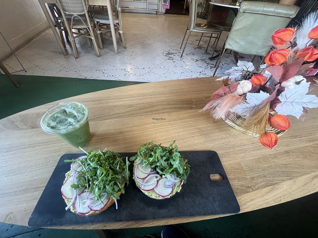 Loved my hummus on a bagel and matcha. I got a dessert to go and it was soooo good. They just added some new menu items. Check em’ out.